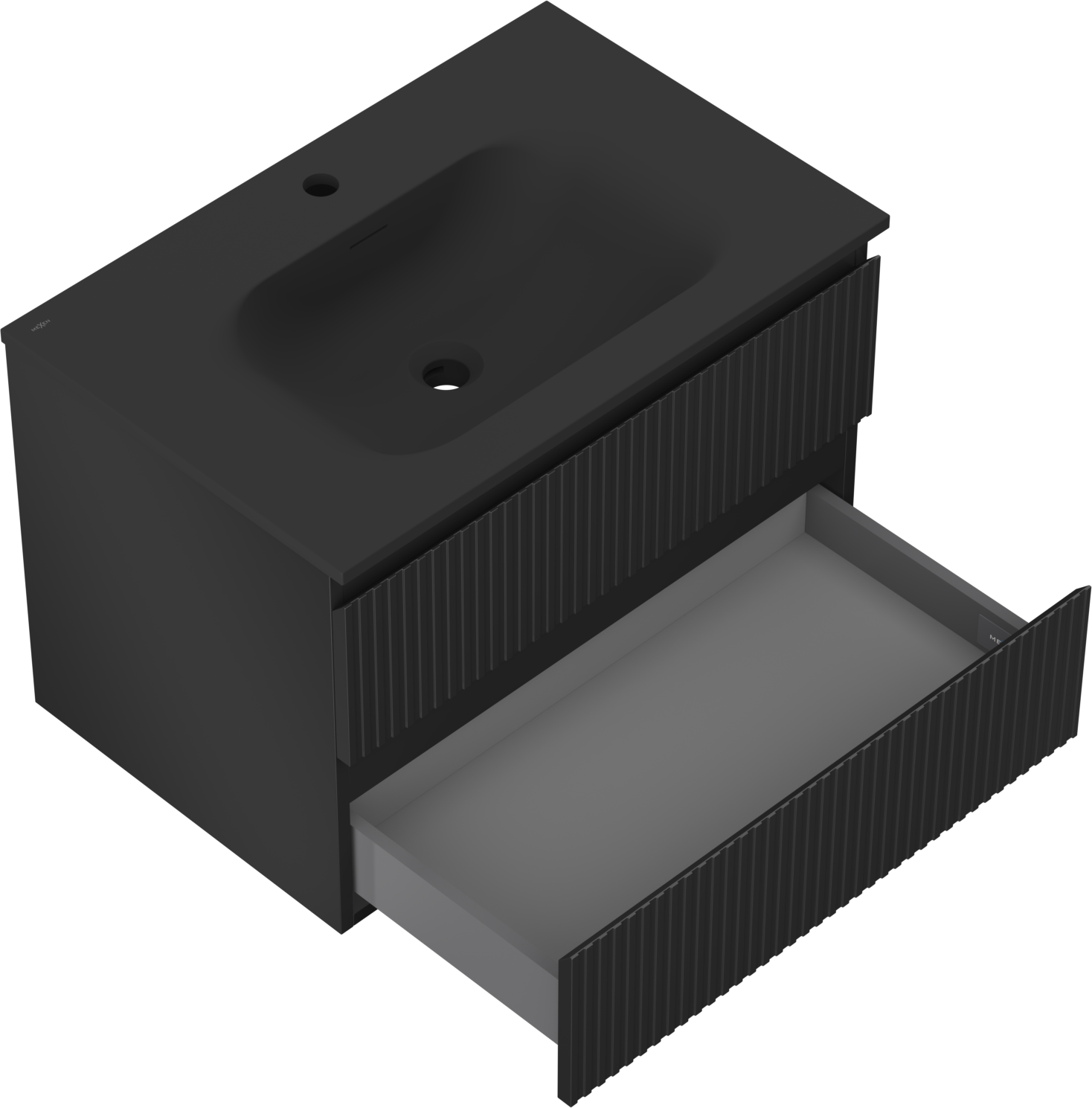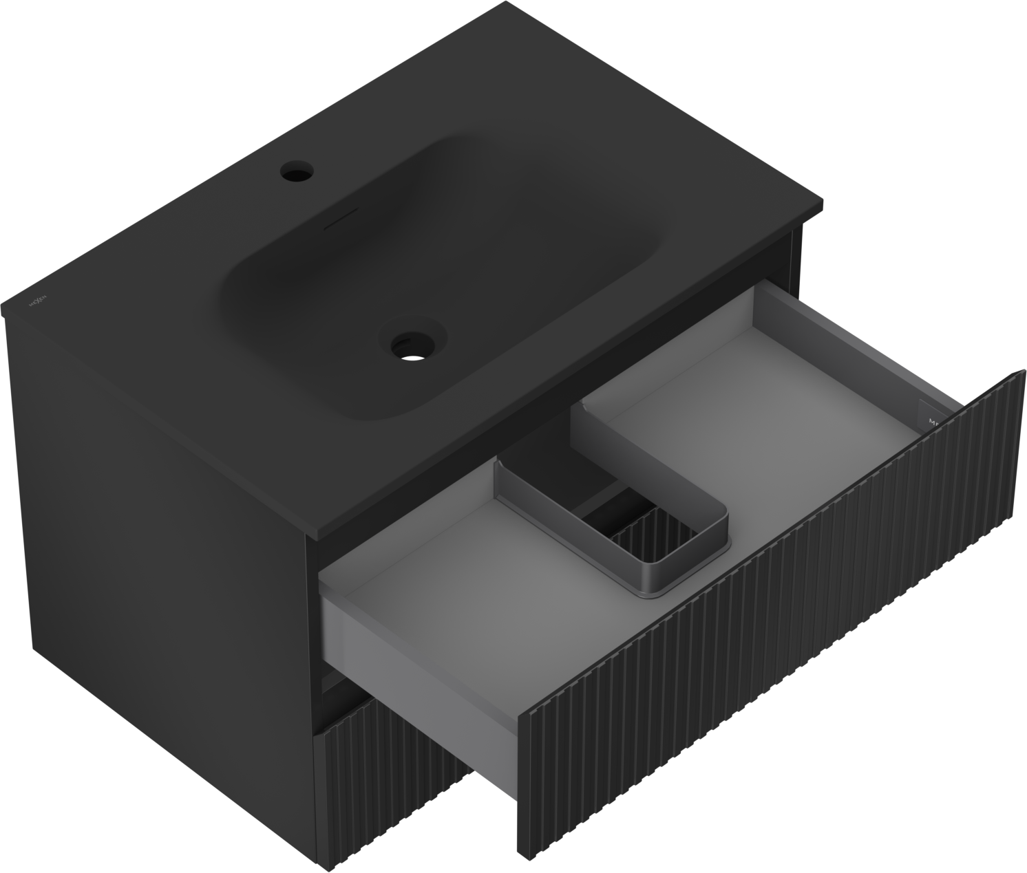 La découpe dans le tiroir est conçue de manière à accueillir le siphon, qui est nécessaire dans les installations de lavabo. Ainsi, le meuble peut être installé de manière pleinement fonctionnelle, sans devoir renoncer à l'espace du tiroir au profit de l'installation.