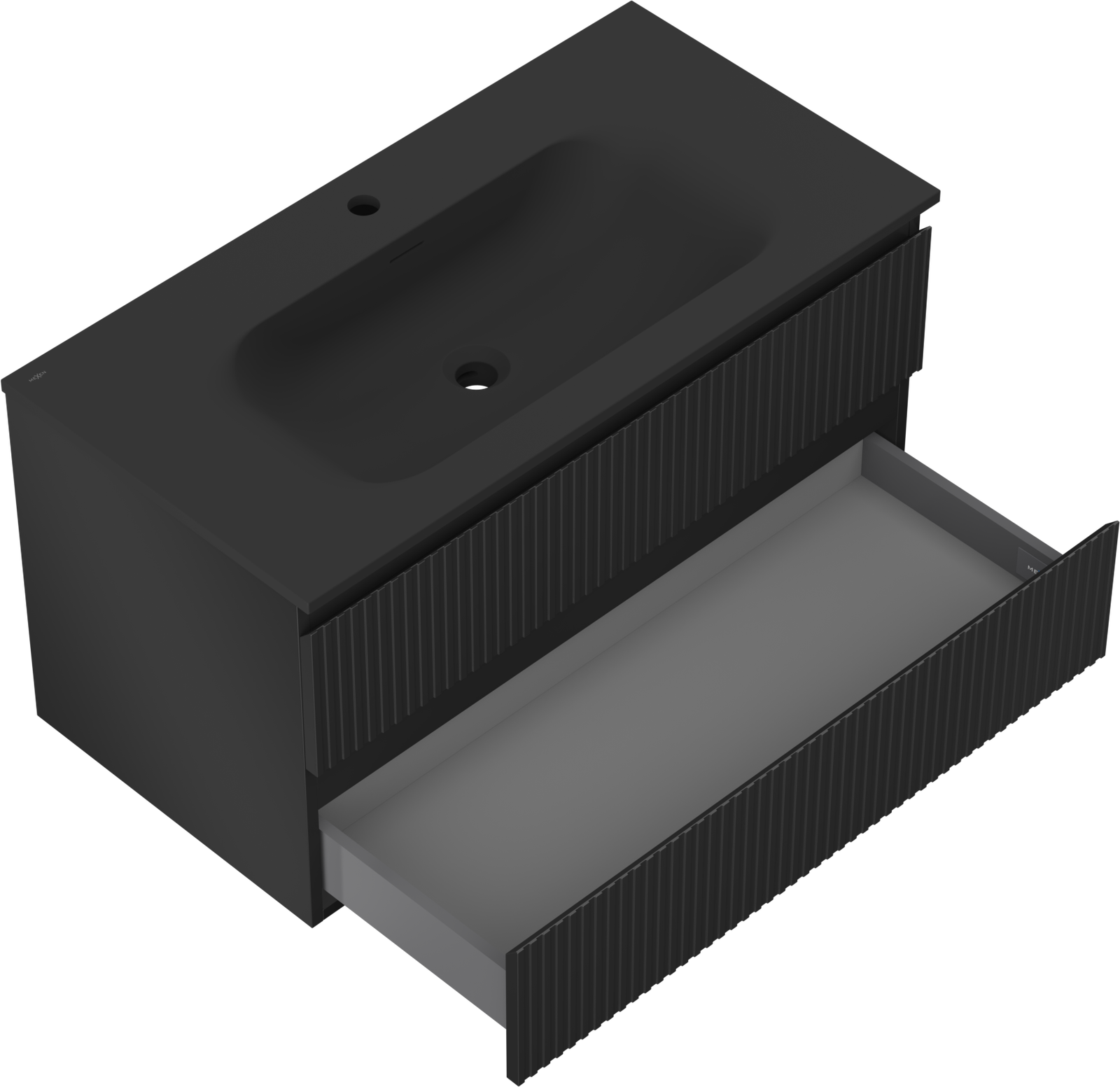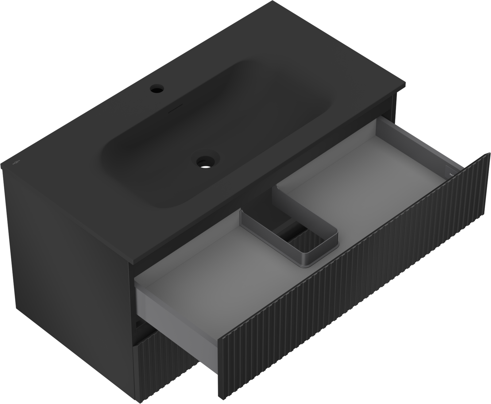 La découpe dans le tiroir est conçue de manière à accueillir le siphon, qui est nécessaire dans les installations de lavabo. Ainsi, le meuble peut être installé de manière pleinement fonctionnelle, sans devoir renoncer à l'espace du tiroir au profit de l'installation.