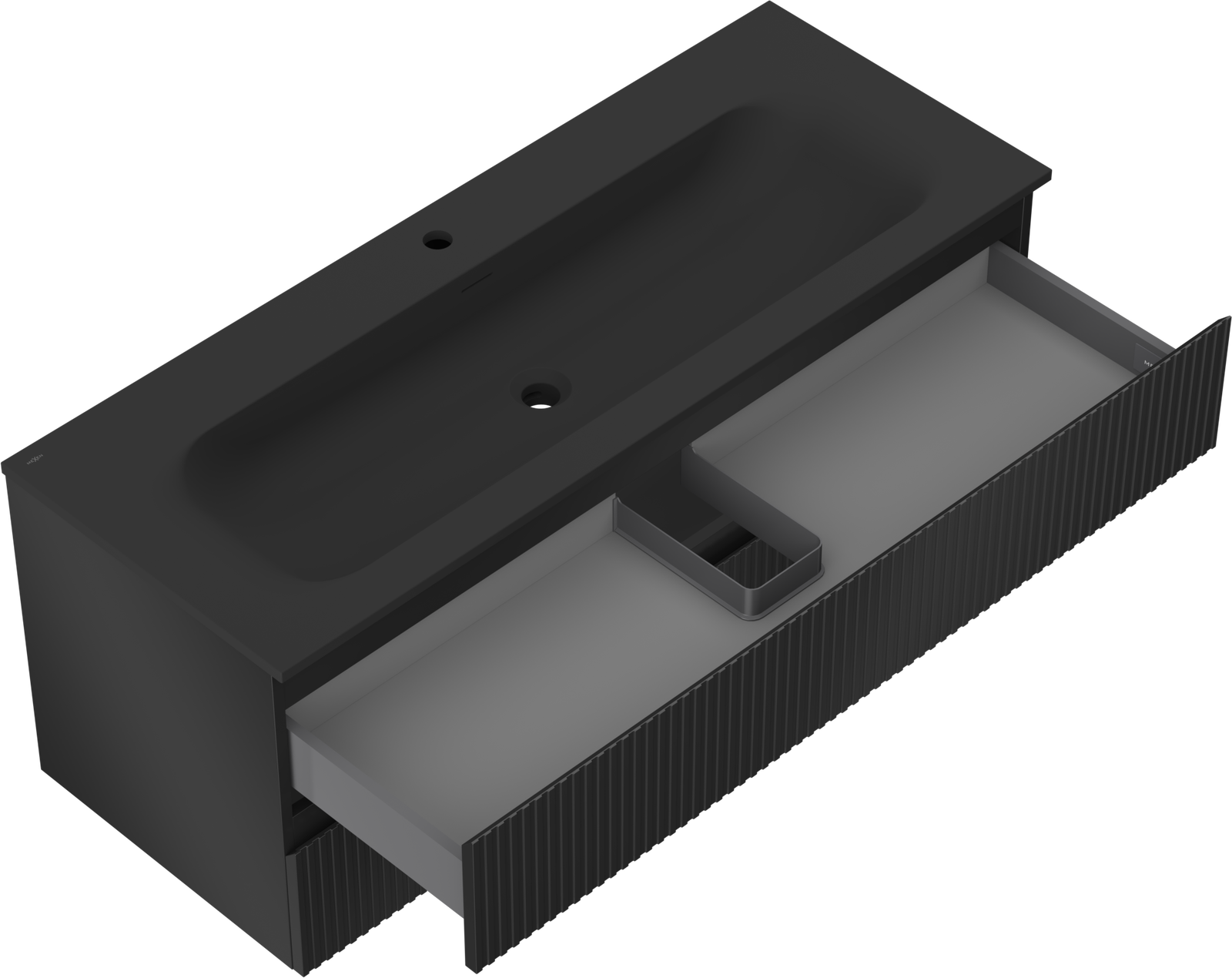 La découpe dans le tiroir est conçue de manière à accueillir le siphon, qui est nécessaire dans les installations de lavabo. Ainsi, le meuble peut être installé de manière pleinement fonctionnelle, sans devoir renoncer à l'espace du tiroir au profit de l'installation.
