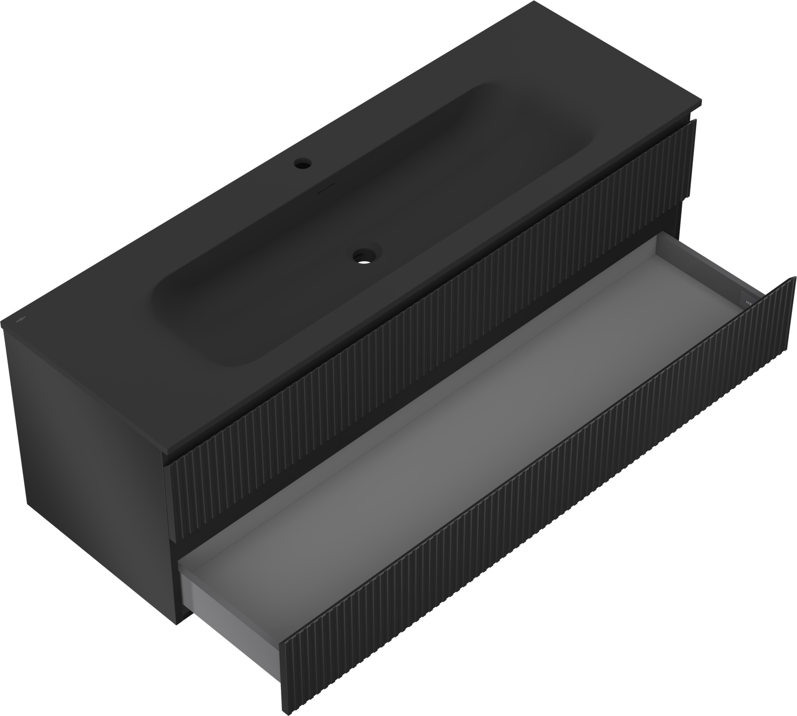 La découpe dans le tiroir est conçue de manière à accueillir le siphon, qui est nécessaire dans les installations de lavabo. Ainsi, le meuble peut être installé de manière pleinement fonctionnelle, sans devoir renoncer à l'espace du tiroir au profit de l'installation.
