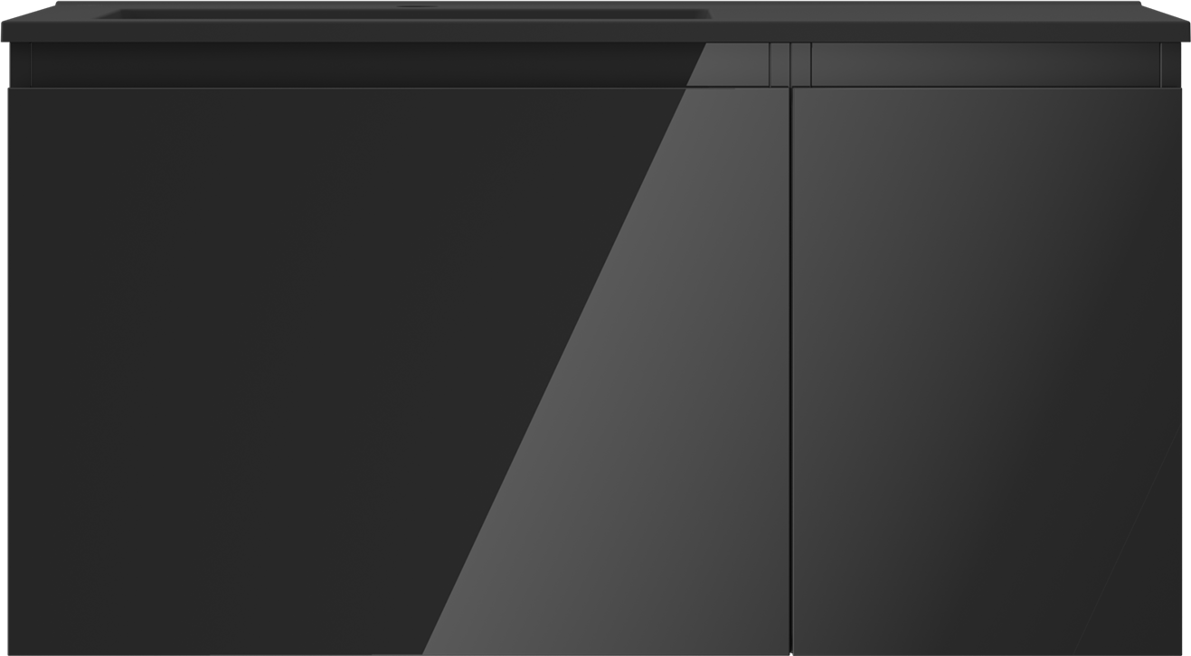 Mexen Orio meuble de salle de bain 90 cm avec lavabo Otis gauche, 1S, 1D, noir brillant/noir mat - 91A13-09047-3-BBFF70-W18L71