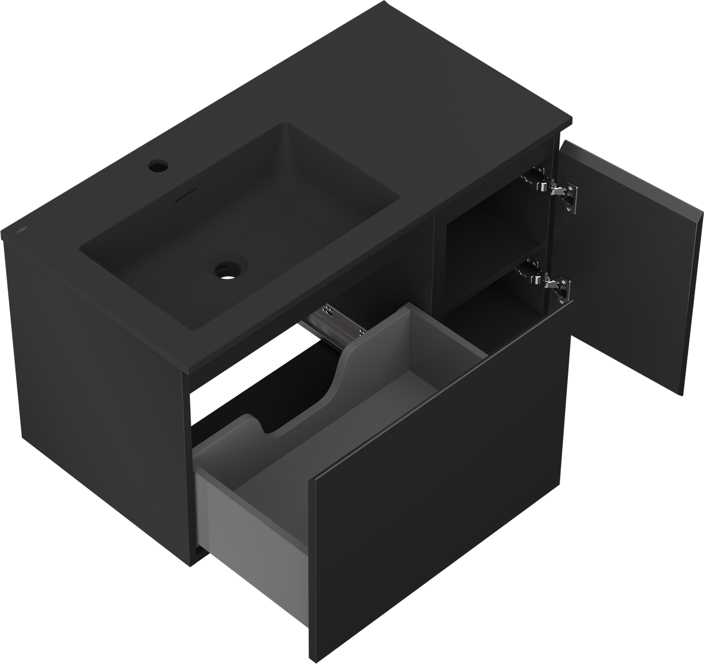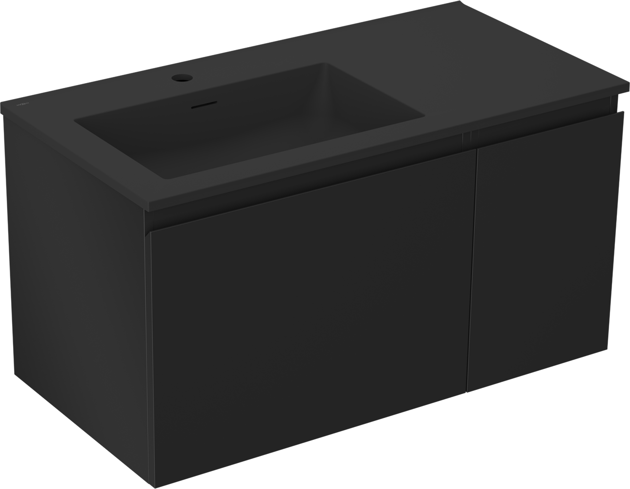 Mexen Orio meuble de salle de bain 90 cm avec lavabo Otis gauche, 1T, 1P, noir mat - 91A13-09047-3-BBFF71-W18L71