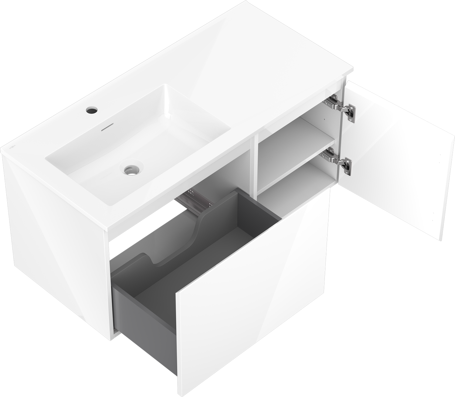Mexen Orio armoire de salle de bains 100 cm avec lavabo Otis gauche, 1S, 1D, blanc brillant - 91A13-10047-3-BBFF00-W18L00