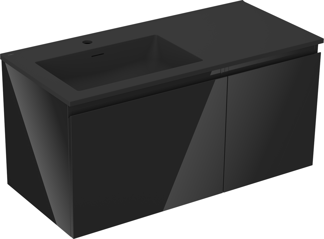 Mexen Orio meuble de salle de bain 100 cm avec lavabo Otis gauche, 1S, 1D, noir brillant/noir mat - 91A13-10047-3-BBFF70-W18L71