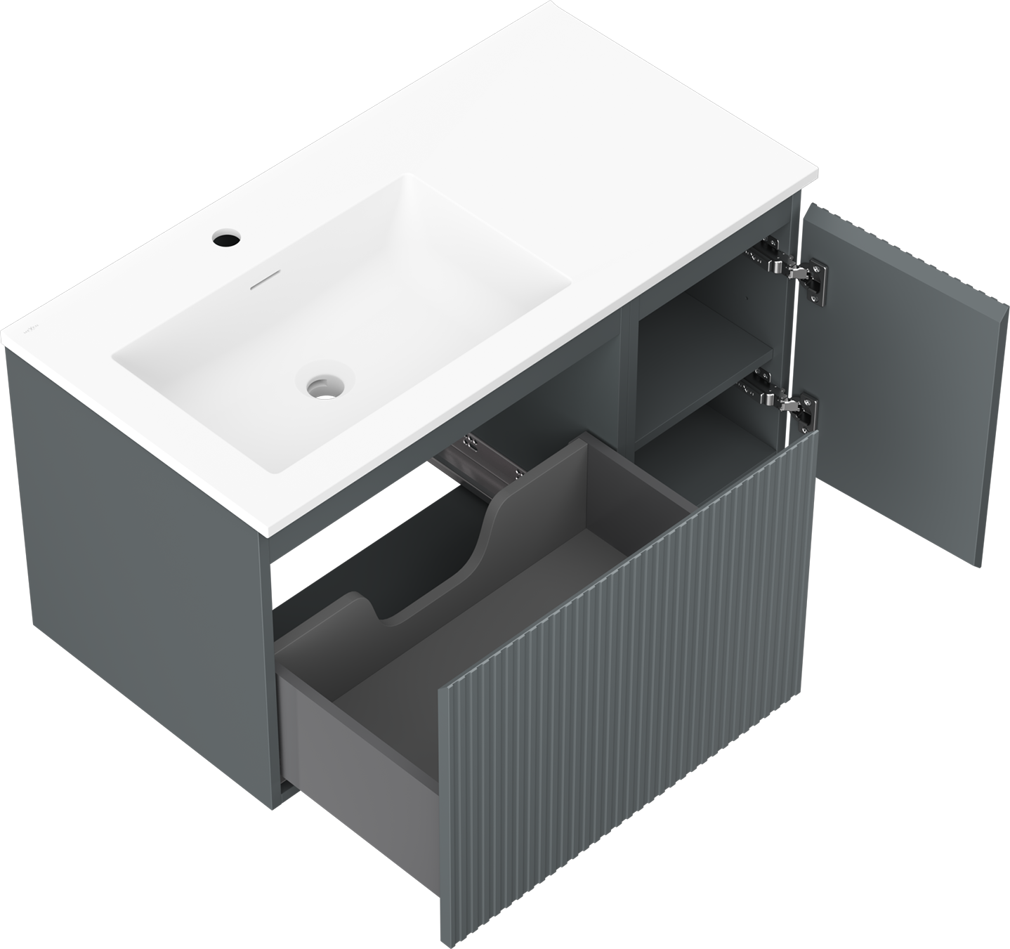 Mexen Rivel meuble de salle de bain 90 cm avec lavabo Otis gauche, 1S, 1D, rainuré, graphite mat/blanc mat