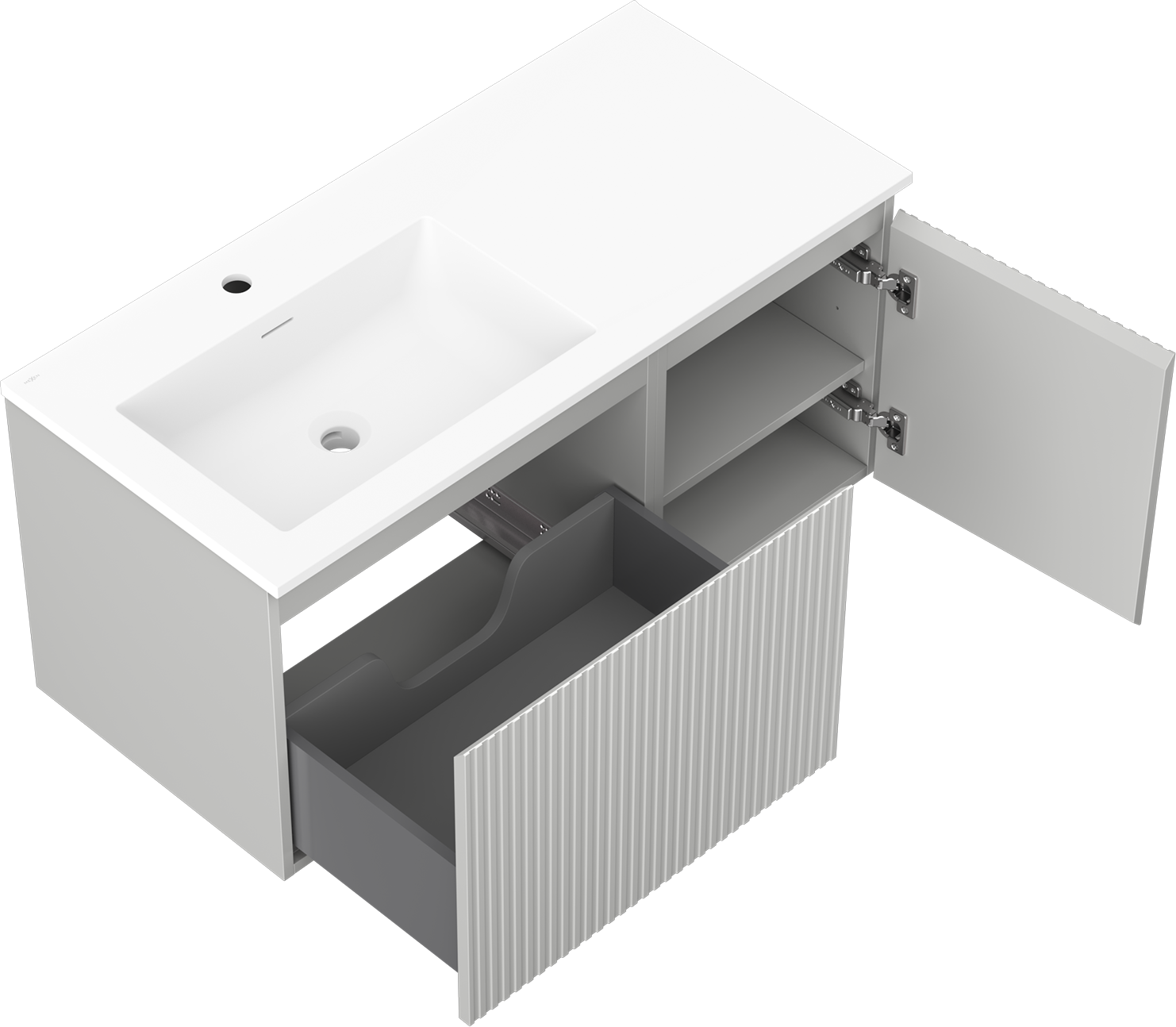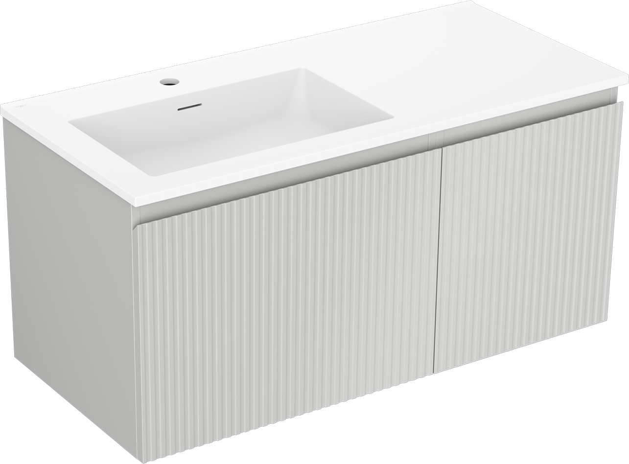 Mexen Rivel armoire de salle de bain 100 cm avec lavabo Otis gauche, 1S, 1D, rainurée, gris mat/blanc mat