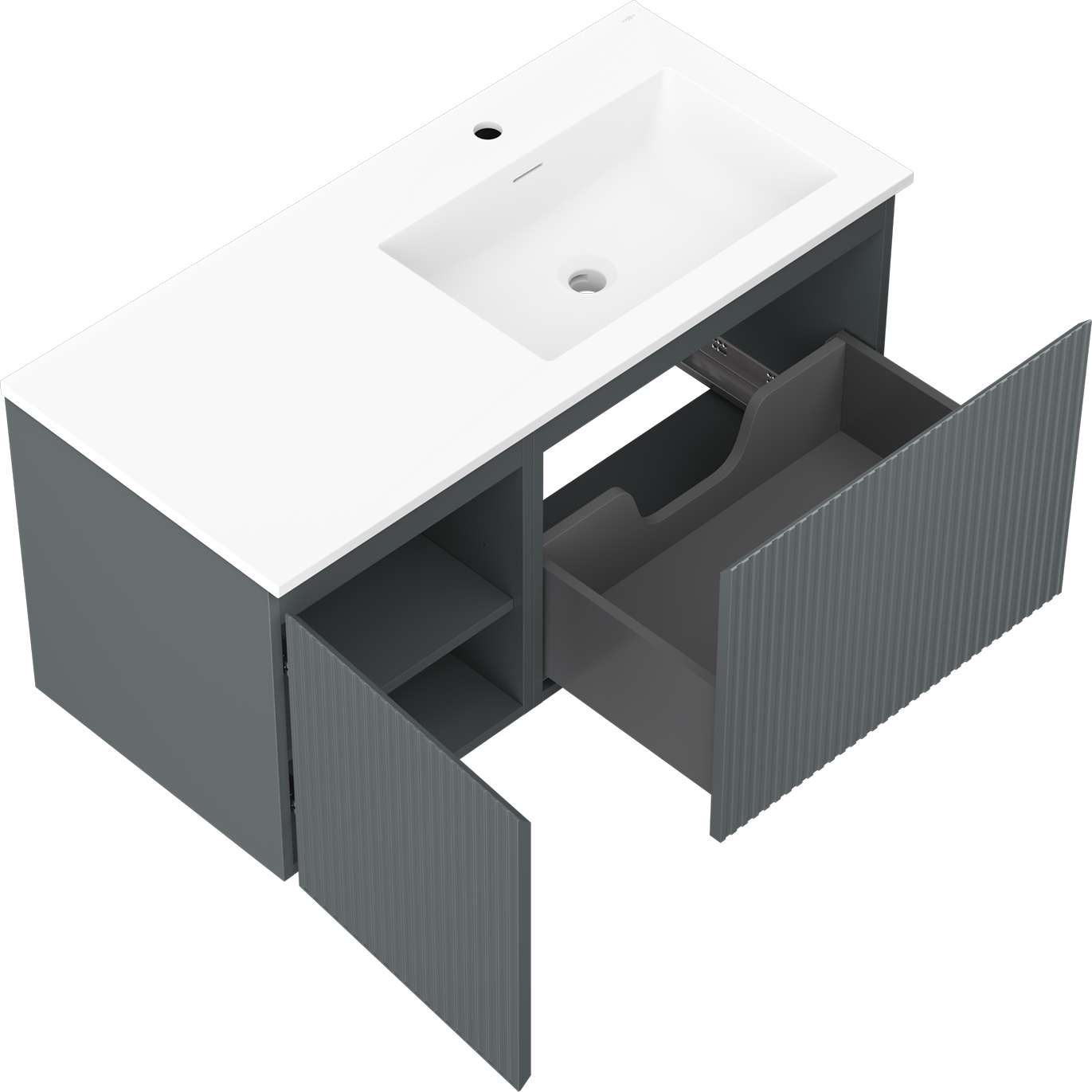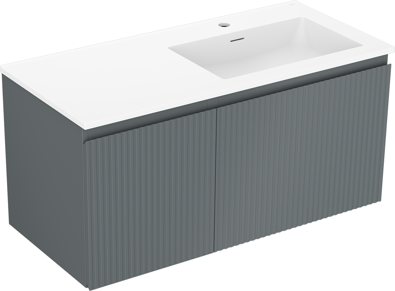 Mexen Rivel armoire de salle de bain 100 cm avec lavabo Otis à droite, 1S, 1D, rainurée, graphite/blanc mat