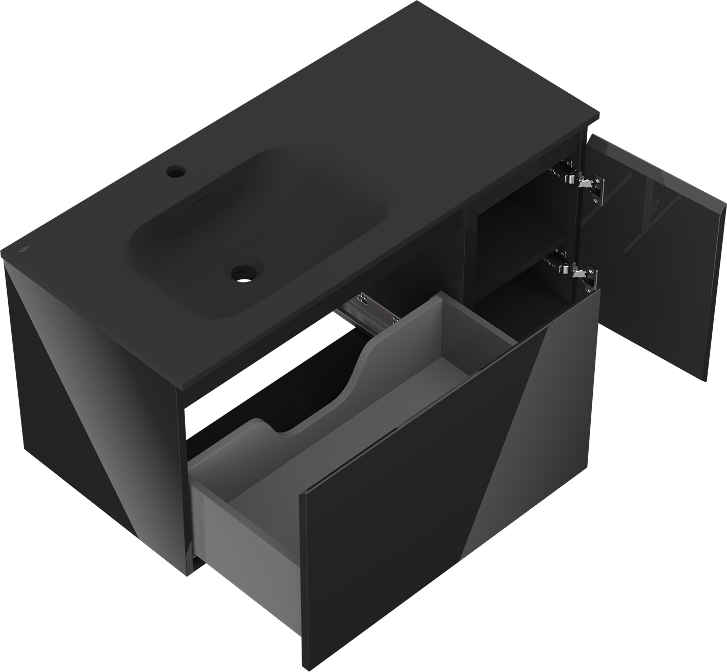 La découpe dans le tiroir est conçue de manière à accueillir le siphon, qui est nécessaire dans les installations de lavabo. Ainsi, le meuble peut être installé de manière pleinement fonctionnelle, sans devoir renoncer à l'espace du tiroir au profit de l'installation.