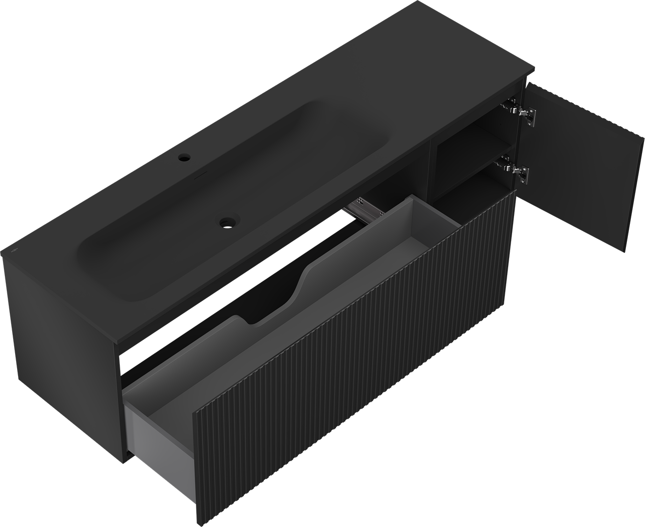 La découpe dans le tiroir est conçue de manière à accueillir le siphon, qui est nécessaire dans les installations de lavabo. Ainsi, le meuble peut être installé de manière pleinement fonctionnelle, sans devoir renoncer à l'espace du tiroir au profit de l'installation.