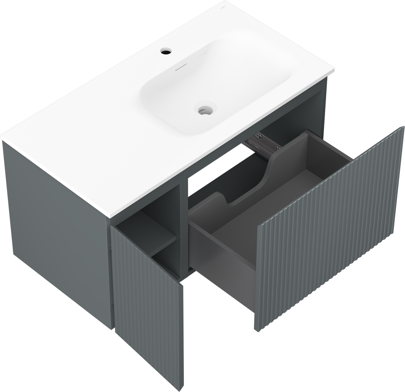 La découpe dans le tiroir est conçue de manière à accueillir le siphon, qui est nécessaire dans les installations de lavabo. Ainsi, le meuble peut être installé de manière pleinement fonctionnelle, sans devoir renoncer à l'espace du tiroir au profit de l'installation.