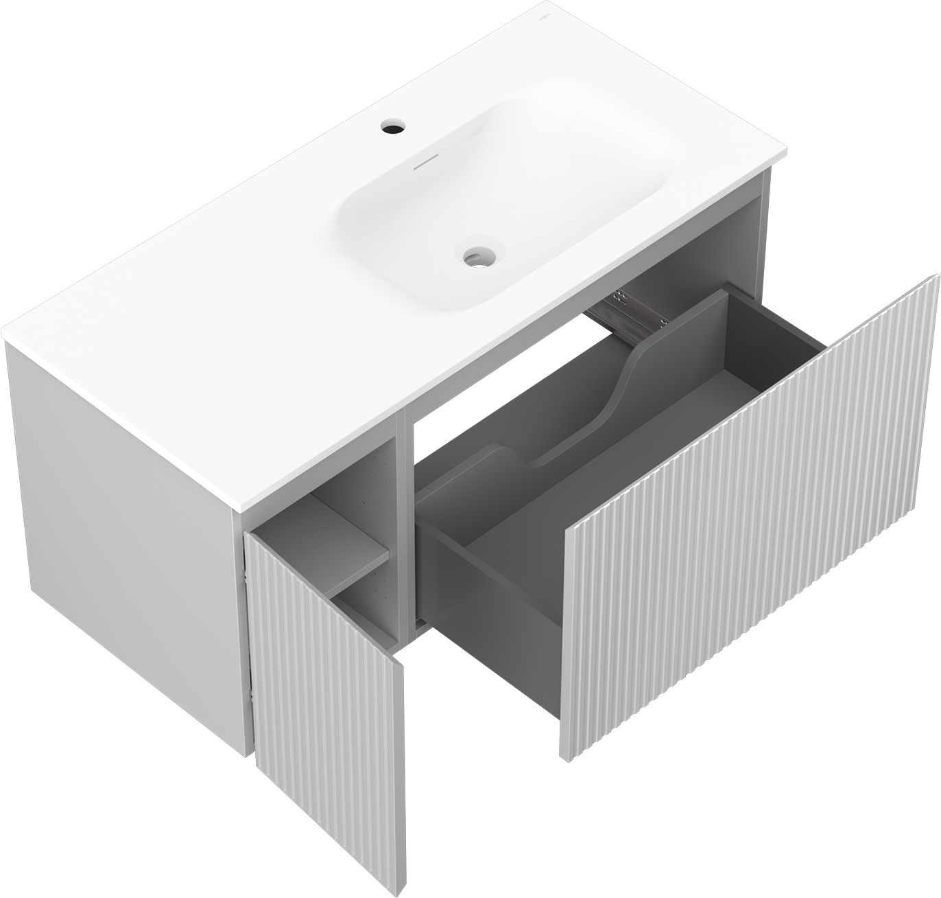 La découpe dans le tiroir est conçue de manière à accueillir le siphon, qui est nécessaire dans les installations de lavabo. Ainsi, le meuble peut être installé de manière pleinement fonctionnelle, sans devoir renoncer à l'espace du tiroir au profit de l'installation.