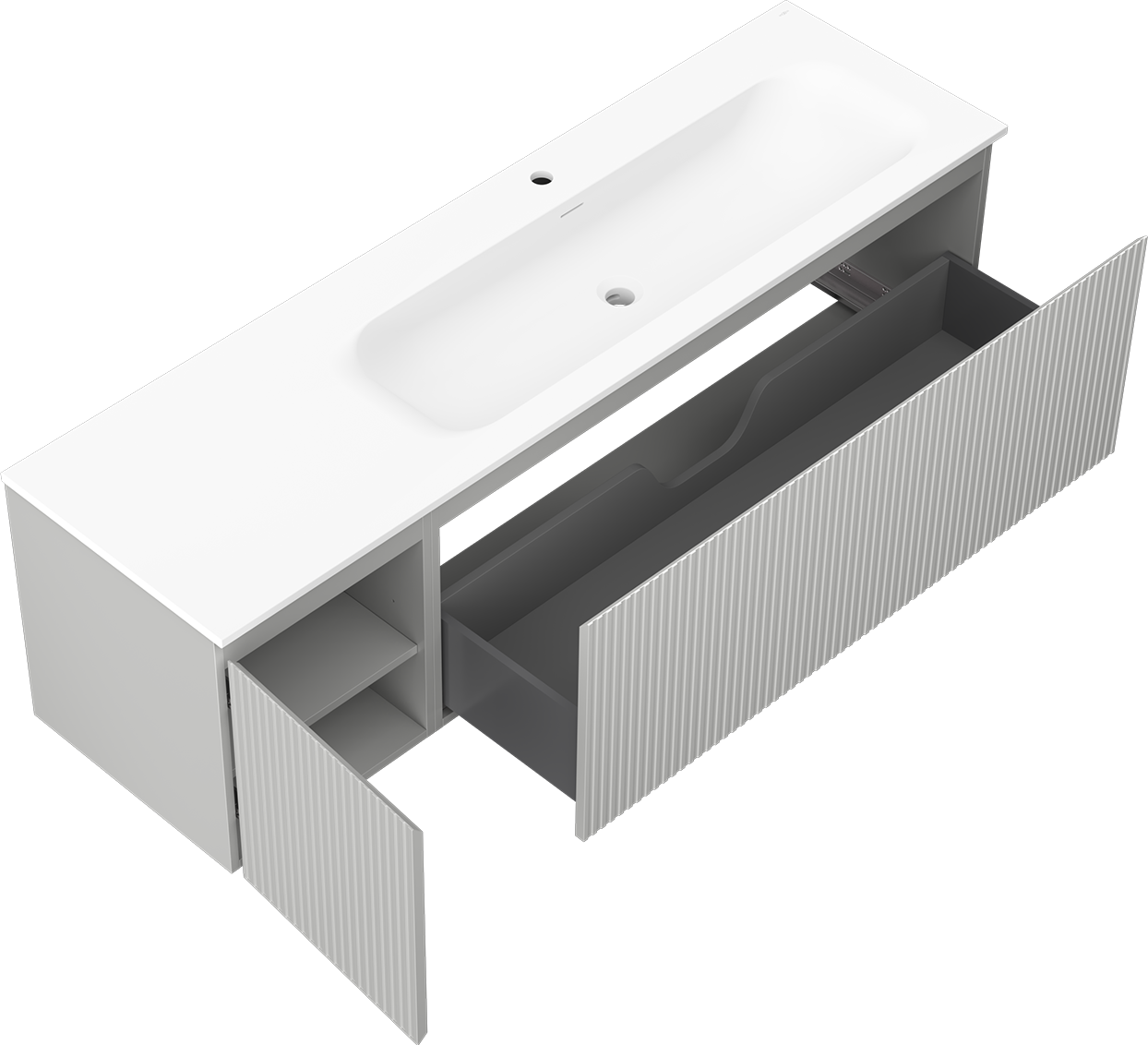 La découpe dans le tiroir est conçue de manière à accueillir le siphon, qui est nécessaire dans les installations de lavabo. Ainsi, le meuble peut être installé de manière pleinement fonctionnelle, sans devoir renoncer à l'espace du tiroir au profit de l'installation.
