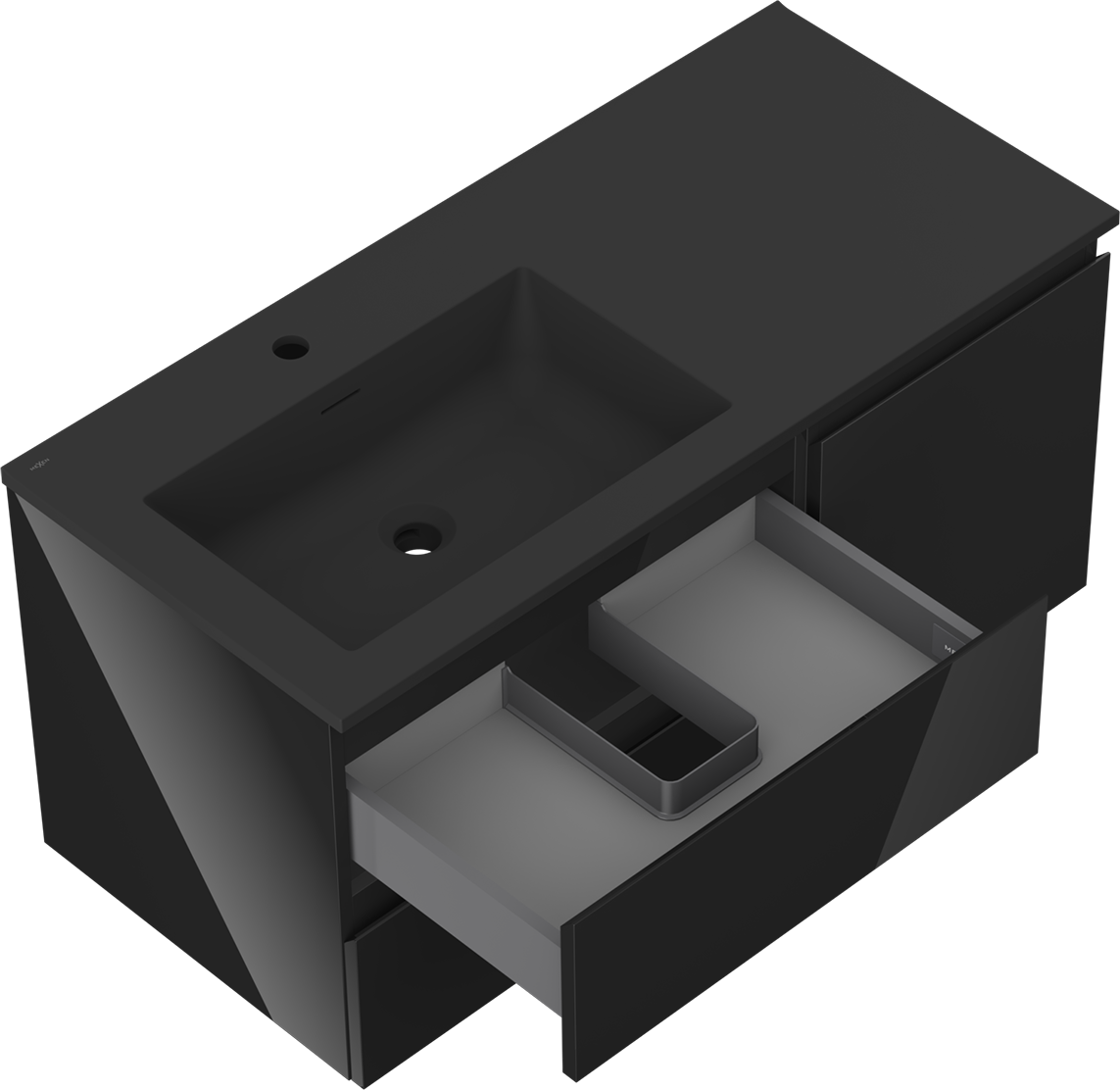 La découpe dans le tiroir est conçue de manière à accueillir le siphon, qui est nécessaire dans les installations de lavabo. Ainsi, le meuble peut être installé de manière pleinement fonctionnelle, sans devoir renoncer à l'espace du tiroir au profit de l'installation.