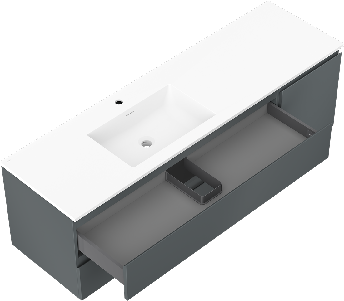 La découpe dans le tiroir est conçue de manière à accueillir le siphon, qui est nécessaire dans les installations de lavabo. Ainsi, le meuble peut être installé de manière pleinement fonctionnelle, sans devoir renoncer à l'espace du tiroir au profit de l'installation.