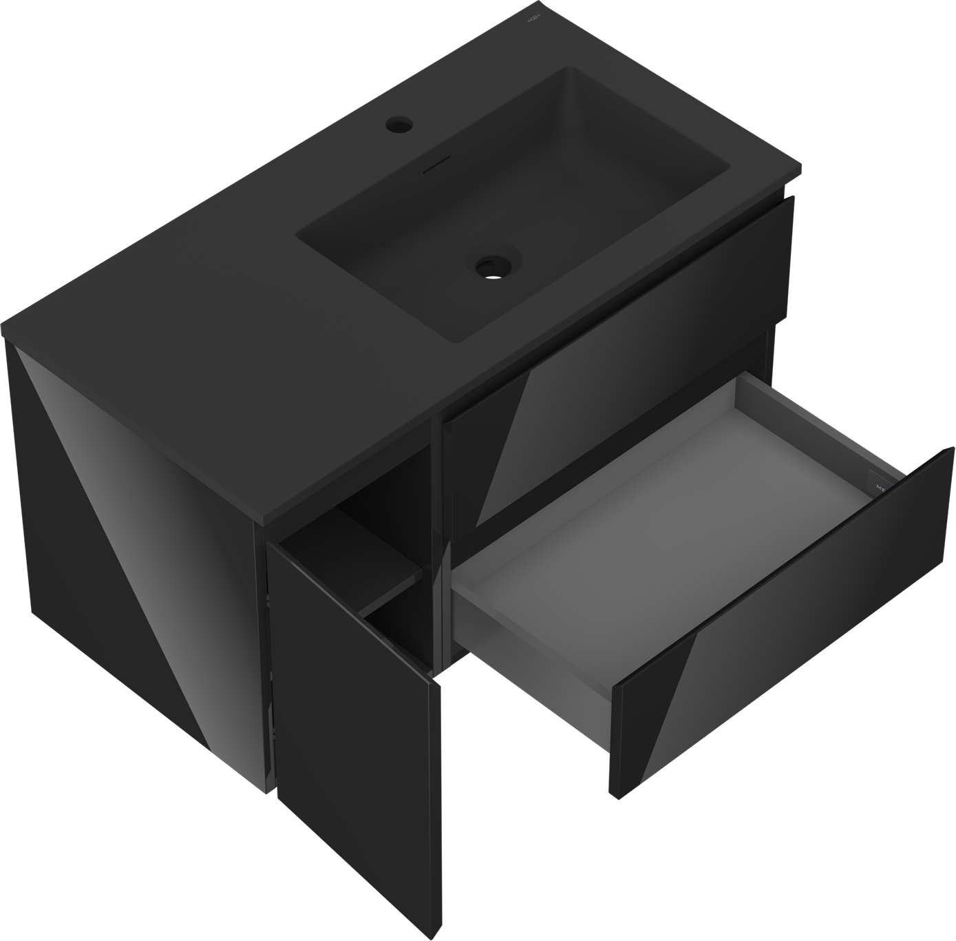 La découpe dans le tiroir est conçue de manière à accueillir le siphon, qui est nécessaire dans les installations de lavabo. Ainsi, le meuble peut être installé de manière pleinement fonctionnelle, sans devoir renoncer à l'espace du tiroir au profit de l'installation.