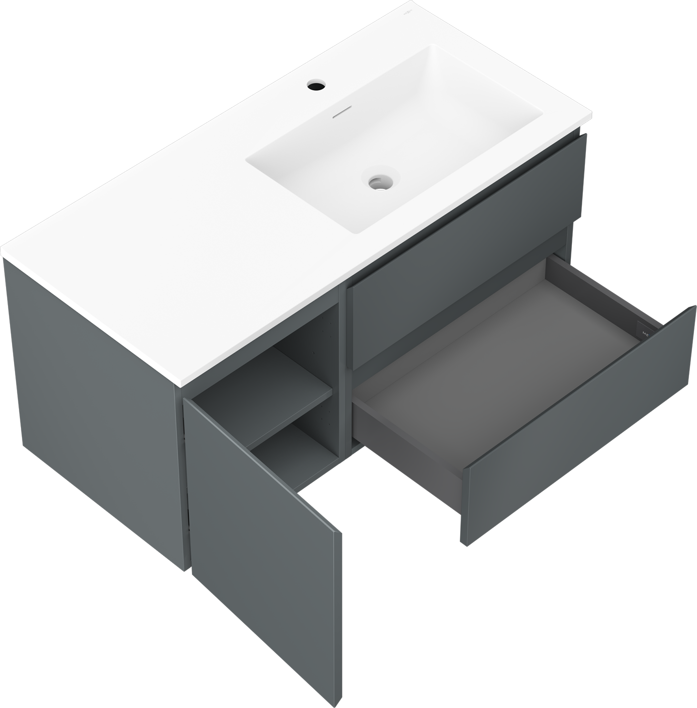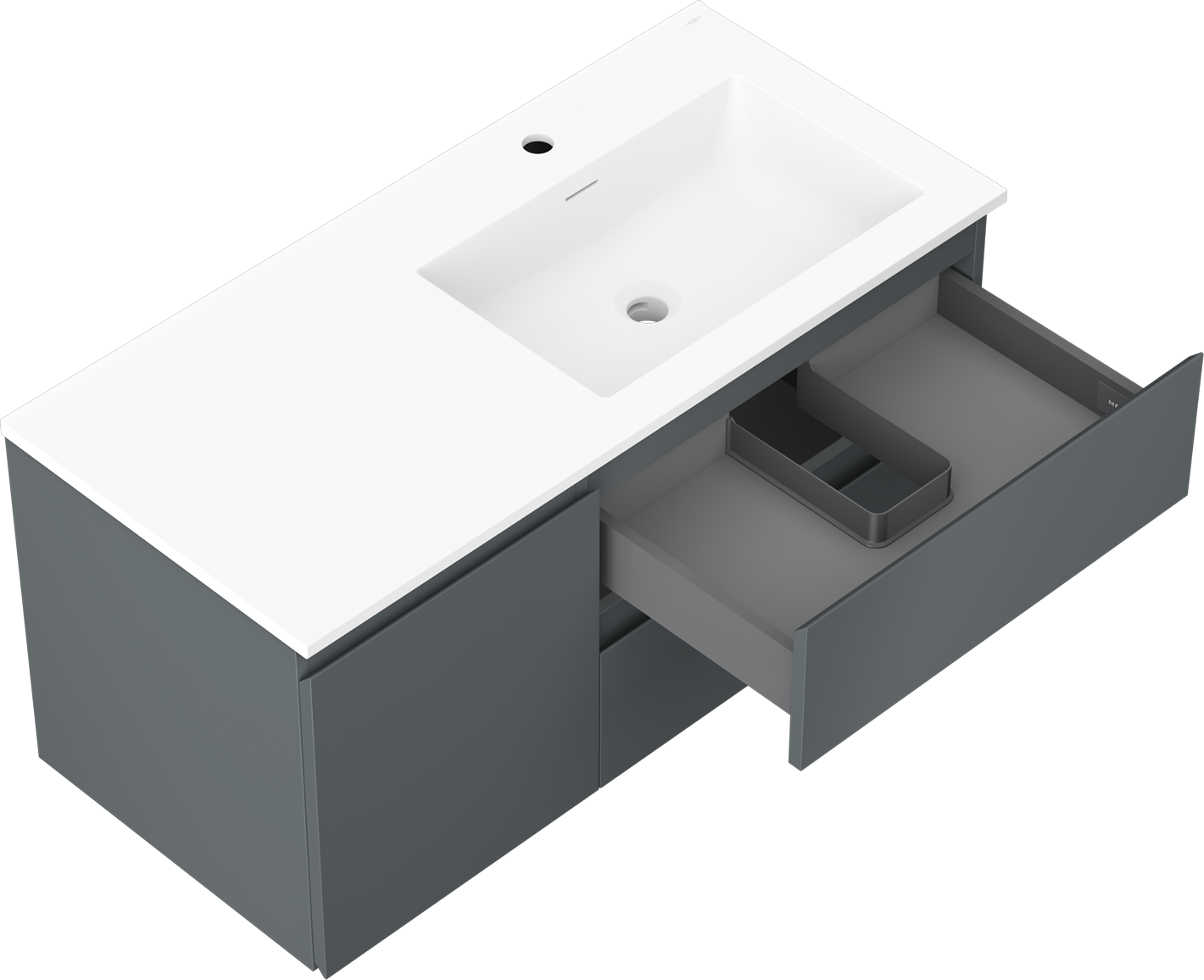 La découpe dans le tiroir est conçue de manière à accueillir le siphon, qui est nécessaire dans les installations de lavabo. Ainsi, le meuble peut être installé de manière pleinement fonctionnelle, sans devoir renoncer à l'espace du tiroir au profit de l'installation.