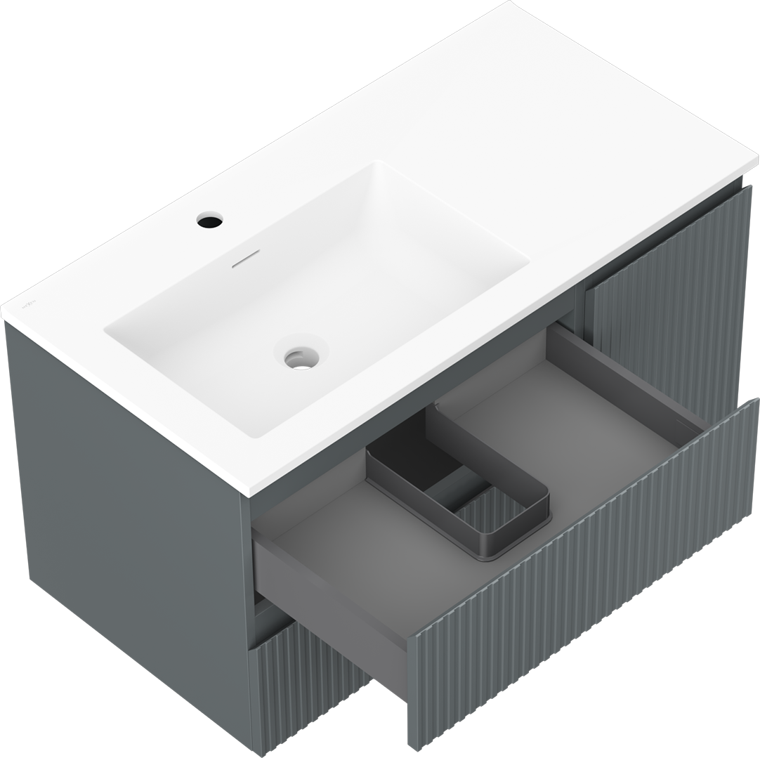 La découpe dans le tiroir est conçue de manière à accueillir le siphon, qui est nécessaire dans les installations de lavabo. Ainsi, le meuble peut être installé de manière pleinement fonctionnelle, sans devoir renoncer à l'espace du tiroir au profit de l'installation.