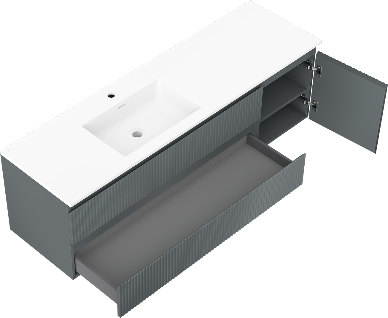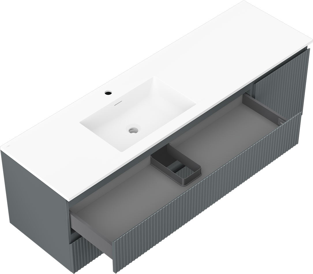 La découpe dans le tiroir est conçue de manière à accueillir le siphon, qui est nécessaire dans les installations de lavabo. Ainsi, le meuble peut être installé de manière pleinement fonctionnelle, sans devoir renoncer à l'espace du tiroir au profit de l'installation.