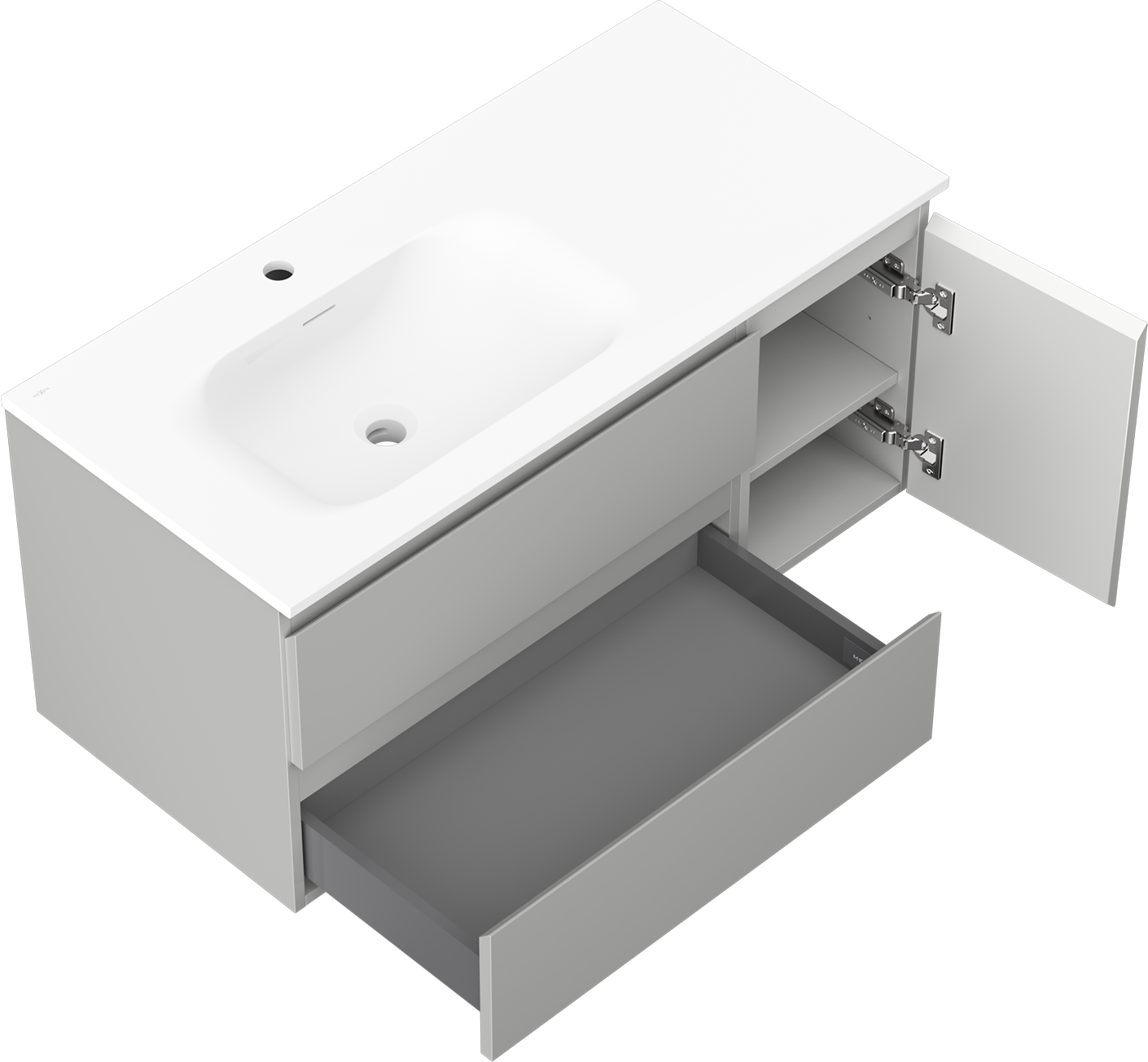 Mexen Orio armoire de salle de bain 100 cm avec lavabo Vela gauche, 2S, 1D, gris mat/blanc mat - 91A13-10047-3-BBFFF62-W23L01