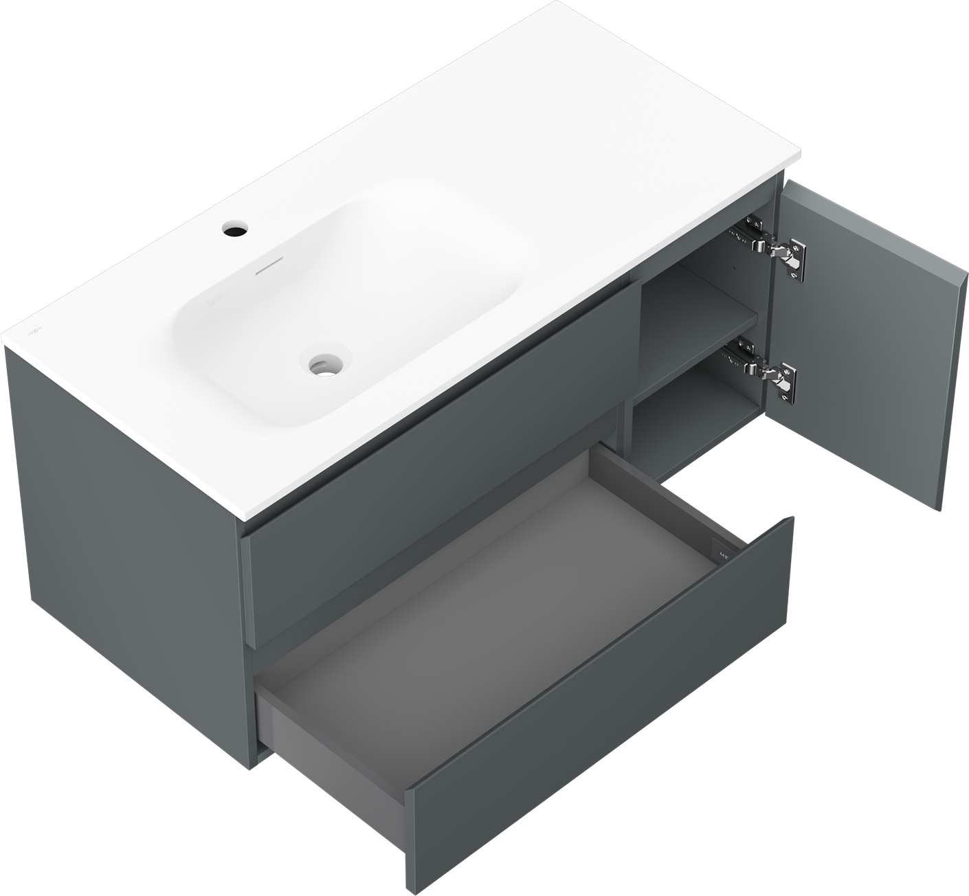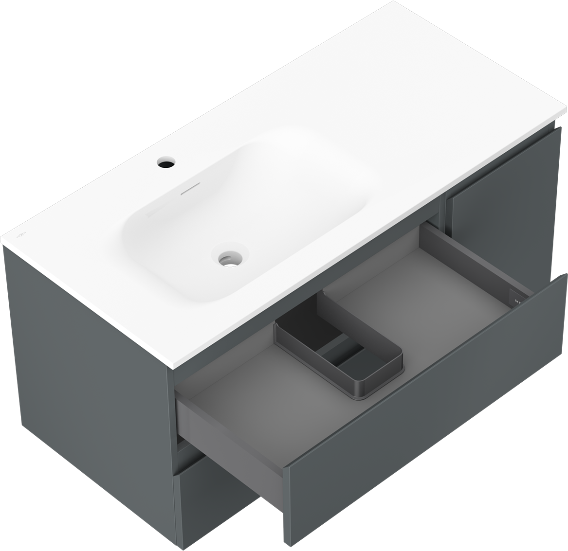 Mexen Orio armoire de salle de bain 100 cm avec lavabo Vela gauche, 2T, 1P, graphite mat/blanc mat