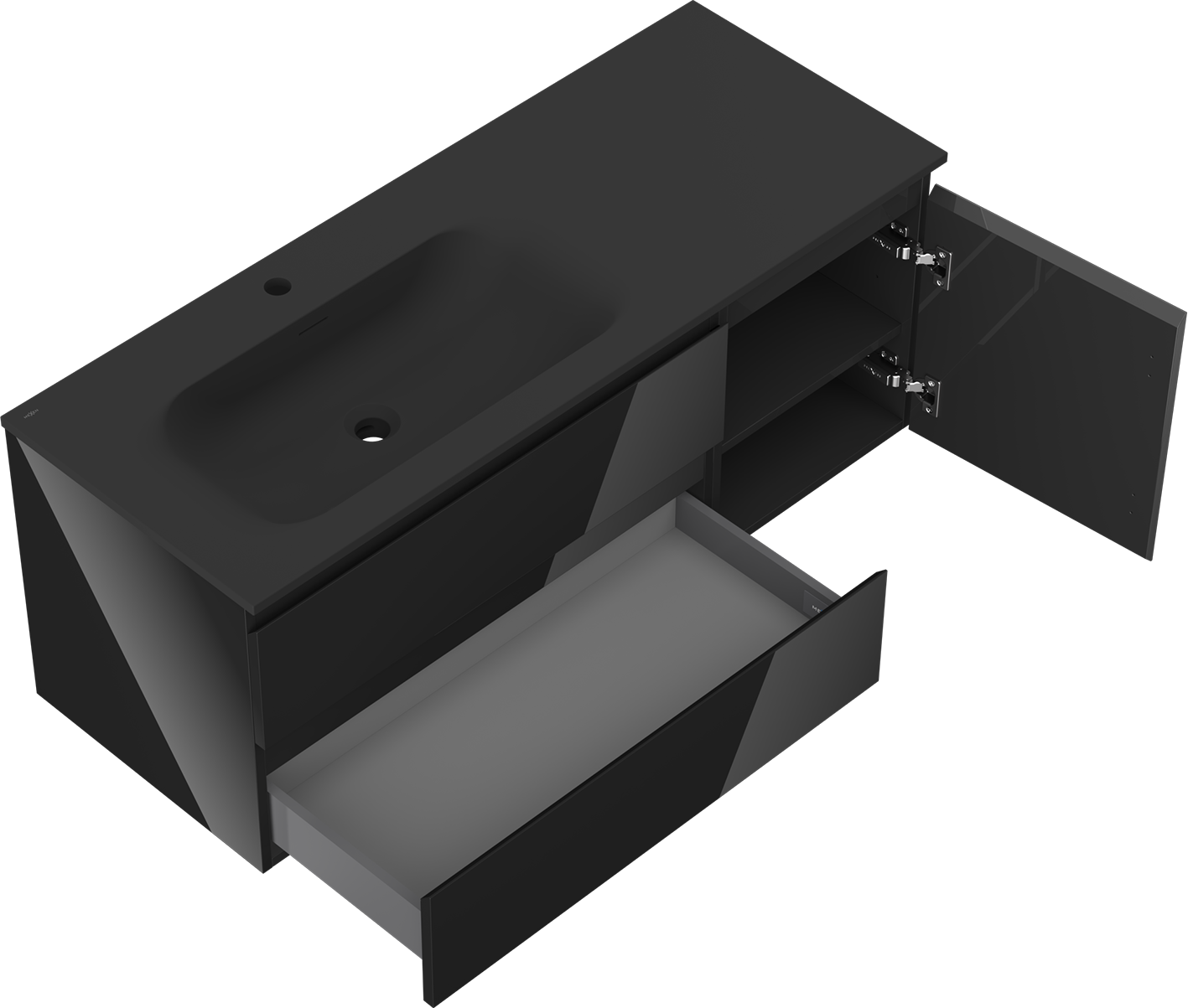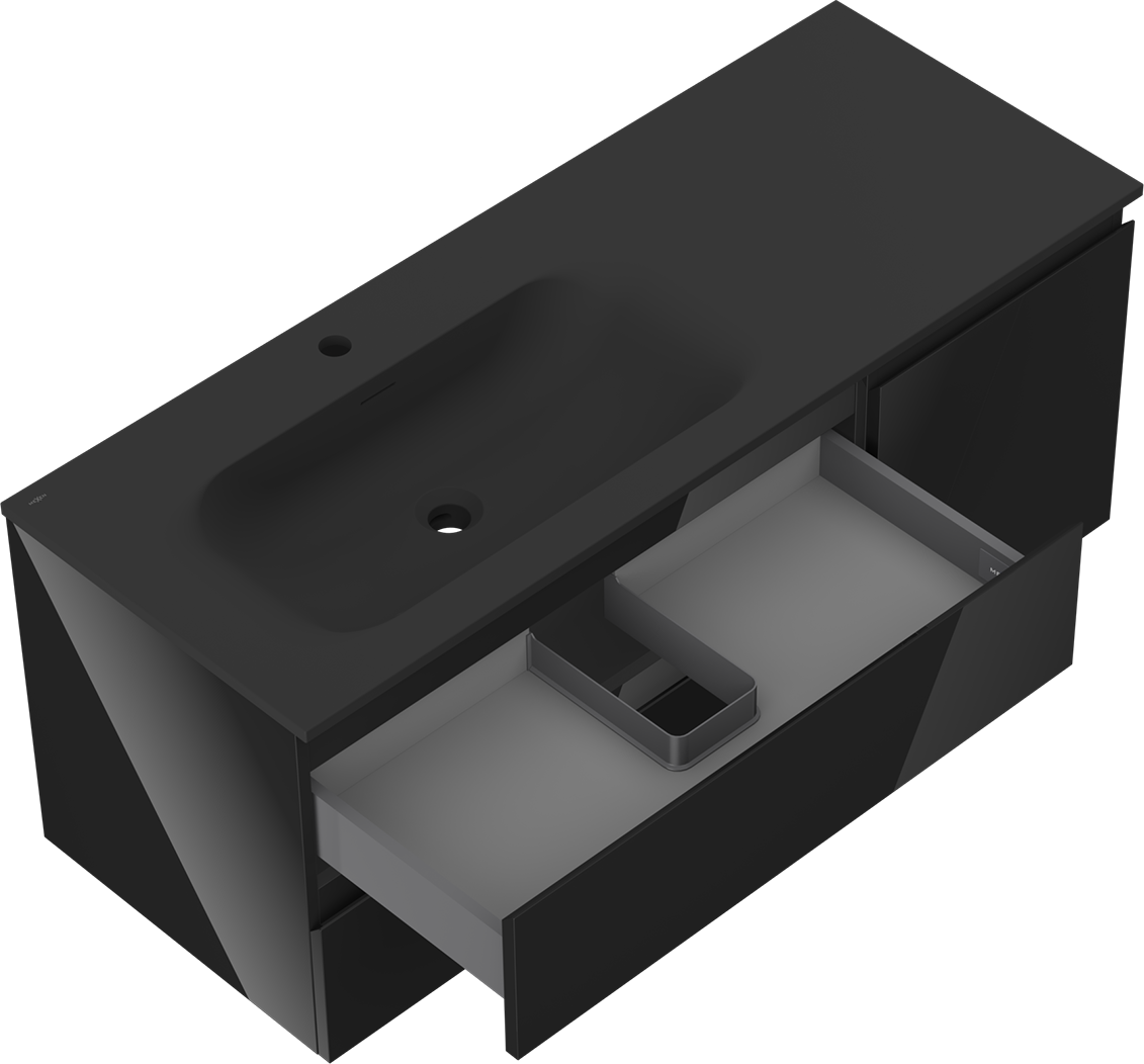 La découpe dans le tiroir est conçue de manière à accueillir le siphon, qui est nécessaire dans les installations de lavabo. Ainsi, le meuble peut être installé de manière pleinement fonctionnelle, sans devoir renoncer à l'espace du tiroir au profit de l'installation.