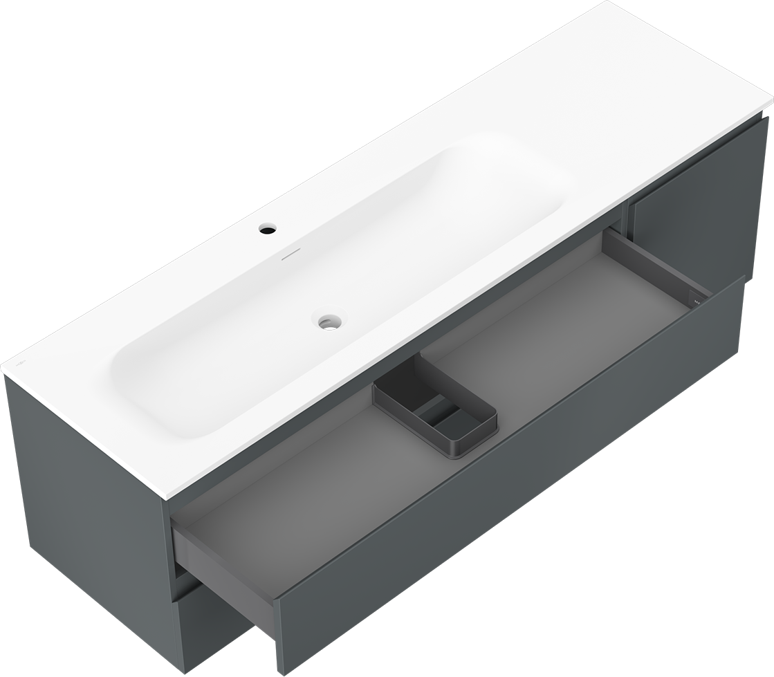 La découpe dans le tiroir est conçue de manière à accueillir le siphon, qui est nécessaire dans les installations de lavabo. Ainsi, le meuble peut être installé de manière pleinement fonctionnelle, sans devoir renoncer à l'espace du tiroir au profit de l'installation.
