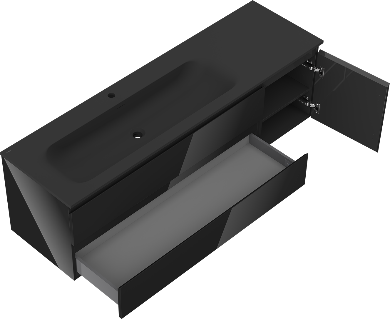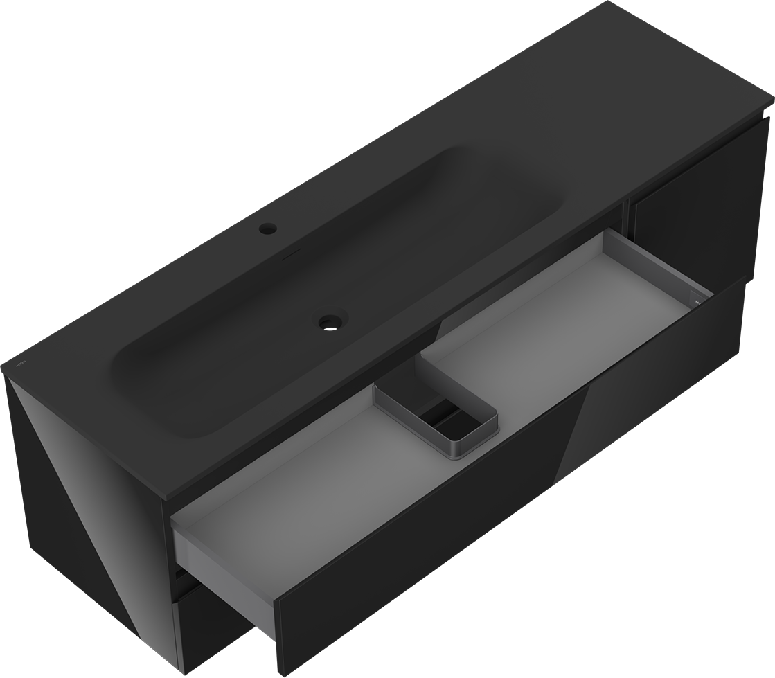 La découpe dans le tiroir est conçue de manière à accueillir le siphon, qui est nécessaire dans les installations de lavabo. Ainsi, le meuble peut être installé de manière pleinement fonctionnelle, sans devoir renoncer à l'espace du tiroir au profit de l'installation.