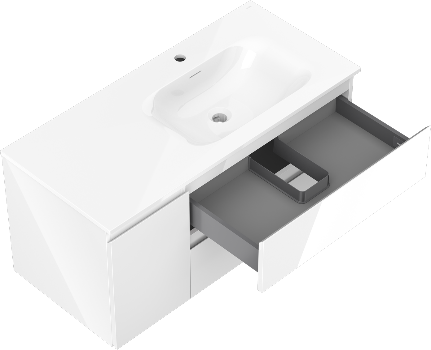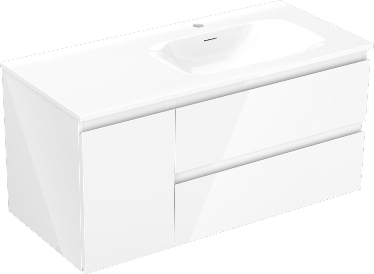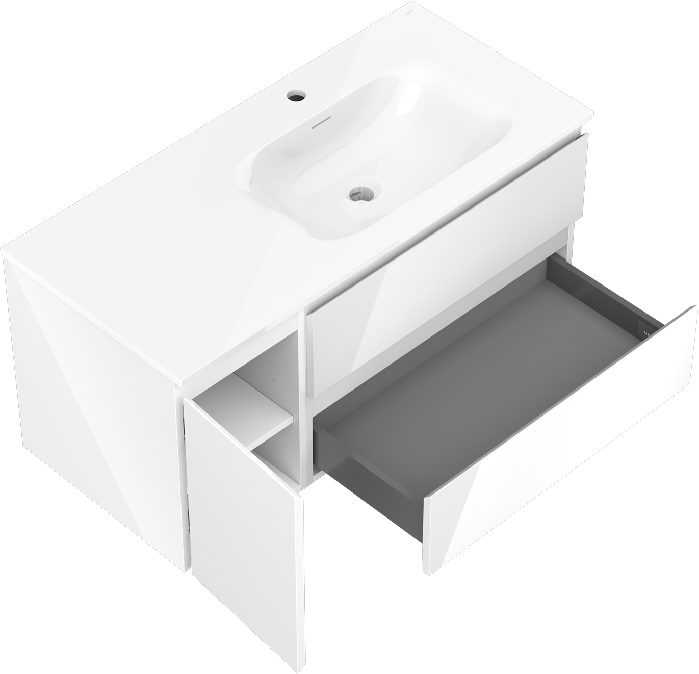 Mexen Orio armoire de salle de bain 100 cm avec lavabo Vela droit, 2S, 1D, blanc brillant - 91A13-10047-3-BBFFF00-W23P00