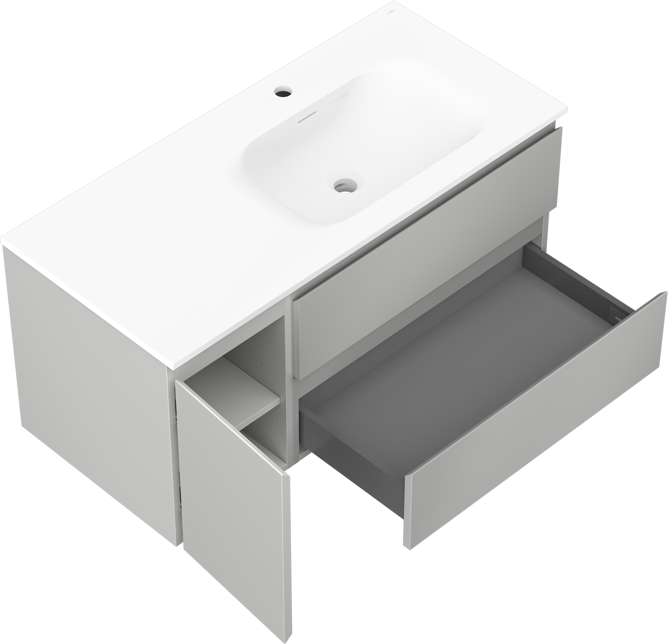 Mexen Orio armoire de salle de bains 100 cm avec lavabo Vela droit, 2T, 1P, gris mat/blanc mat - 91A13-10047-3-BBFFF62-W23P01