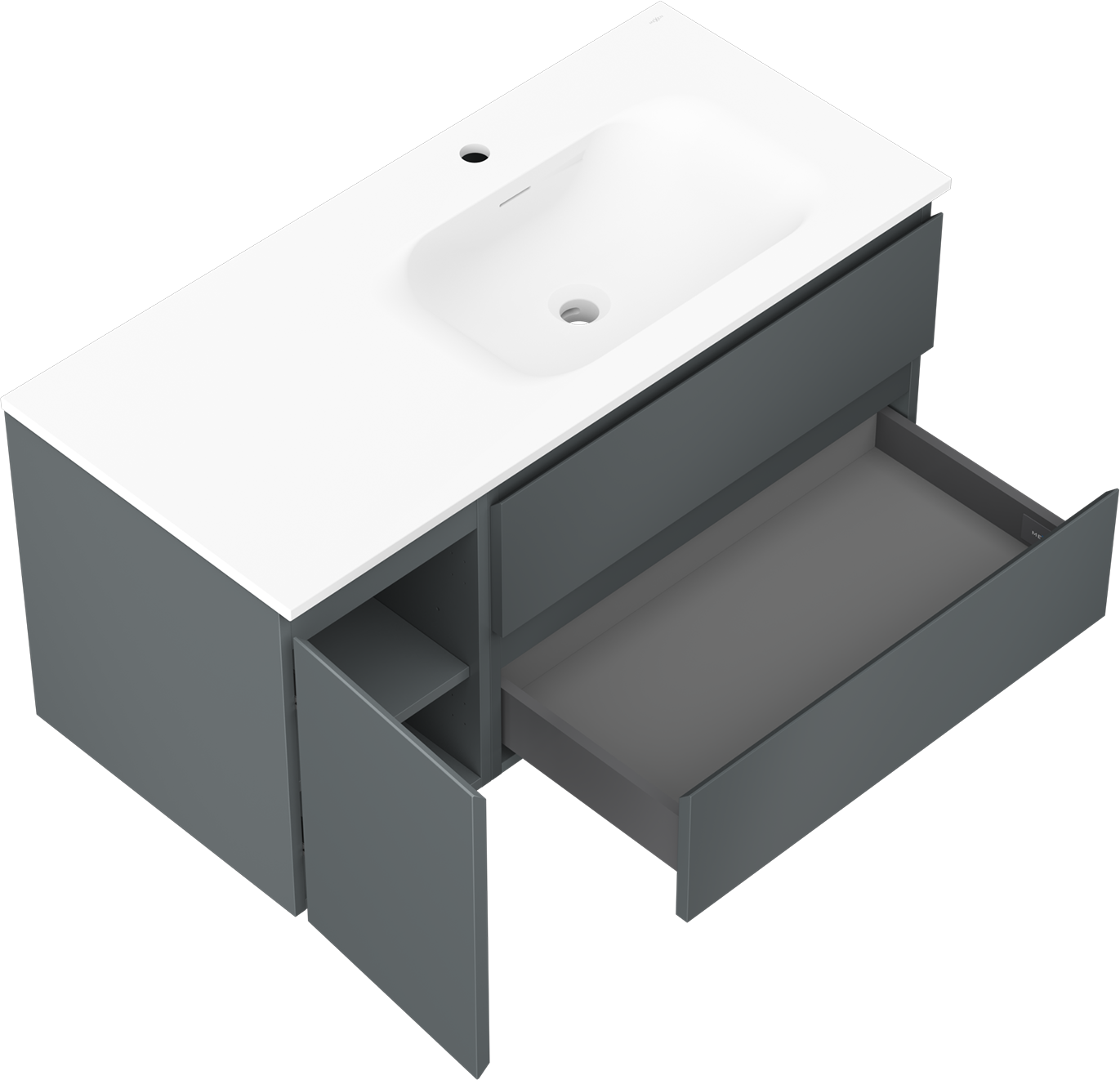 Mexen Orio armoire de salle de bains 100 cm avec lavabo Vela droit, 2S, 1P, graphite mat/blanc mat