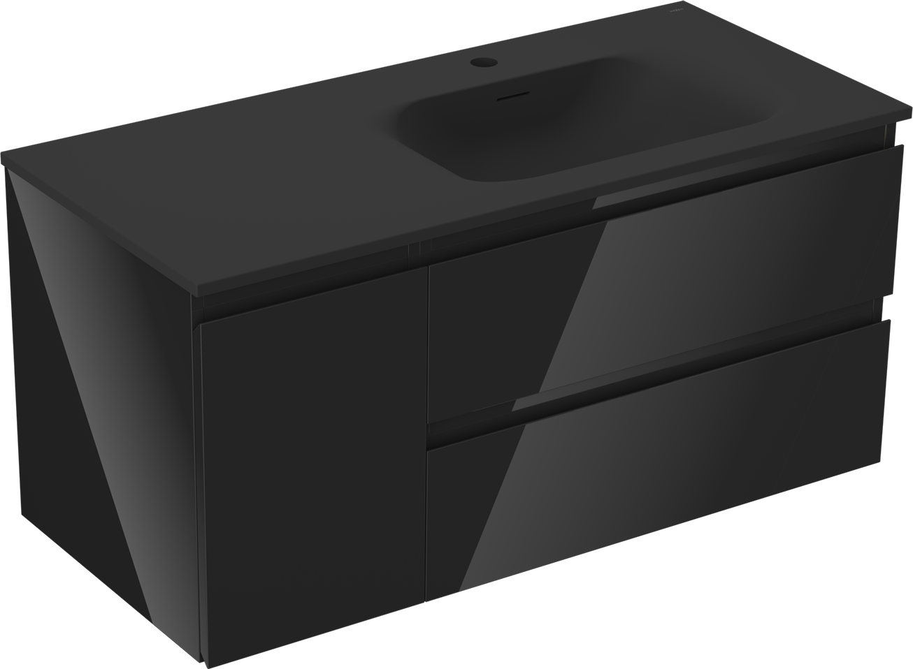 Mexen Orio meuble de salle de bain 100 cm avec lavabo Vela à droite, 2S, 1D, noir brillant/noir mat