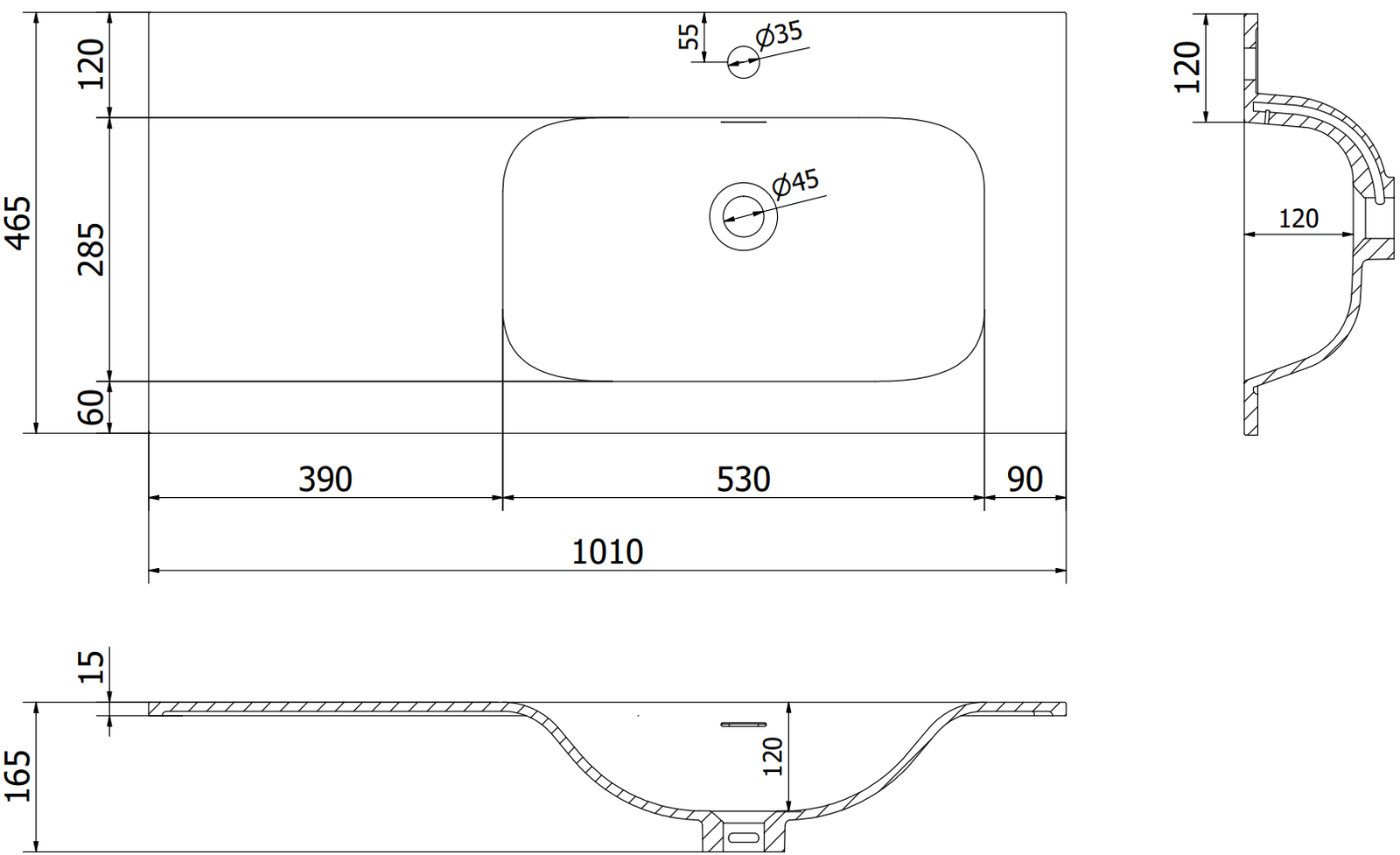 Le lavabo possède un trou dans lequel nous pouvons installer un robinet. Cela permet d'économiser un espace précieux dans la salle de bains et de souligner son esthétique. Cette solution permet également de maintenir plus facilement la propreté autour du lavabo.