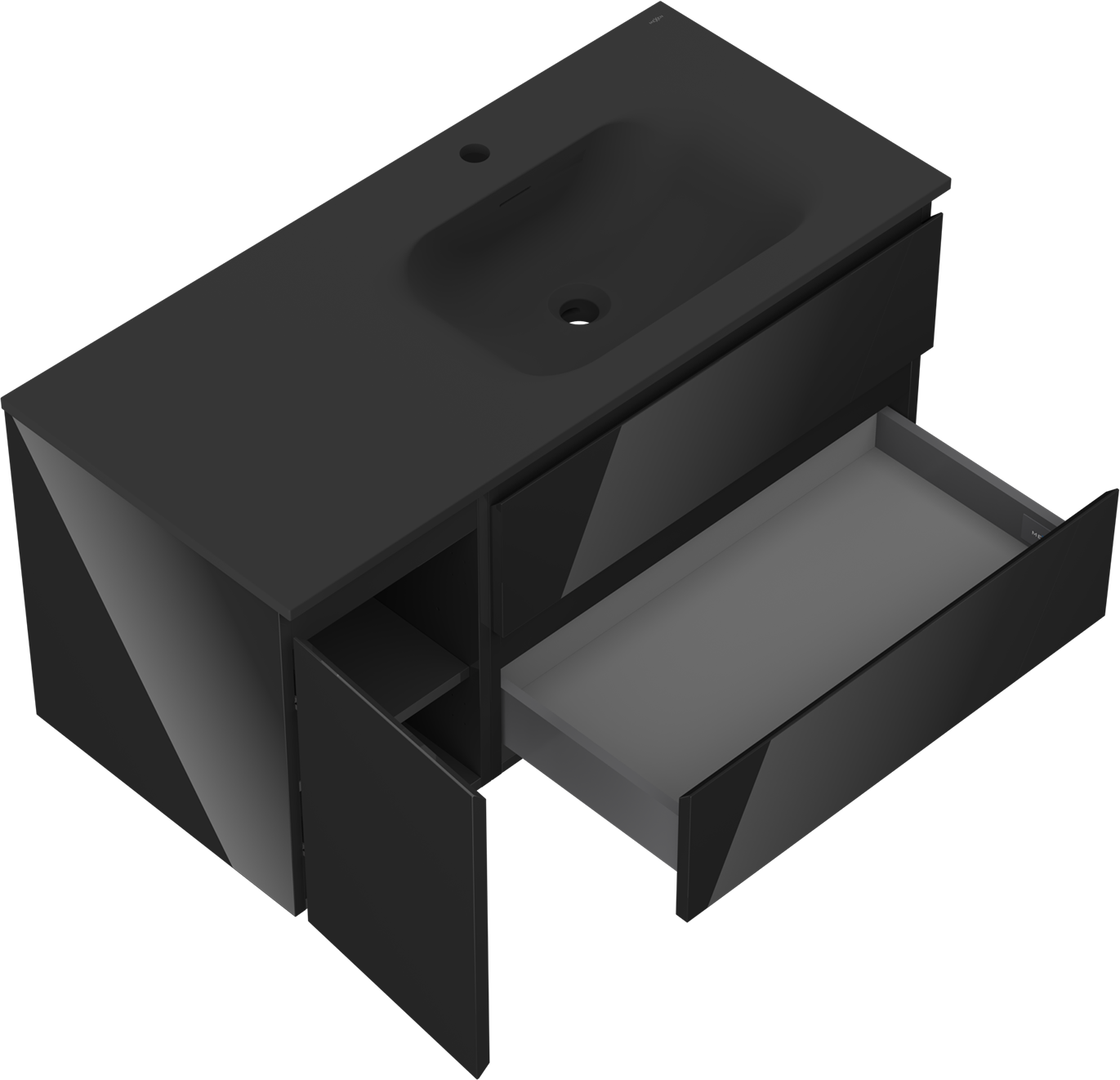 La découpe dans le tiroir est conçue de manière à accueillir le siphon, qui est nécessaire dans les installations de lavabo. Ainsi, le meuble peut être installé de manière pleinement fonctionnelle, sans devoir renoncer à l'espace du tiroir au profit de l'installation.