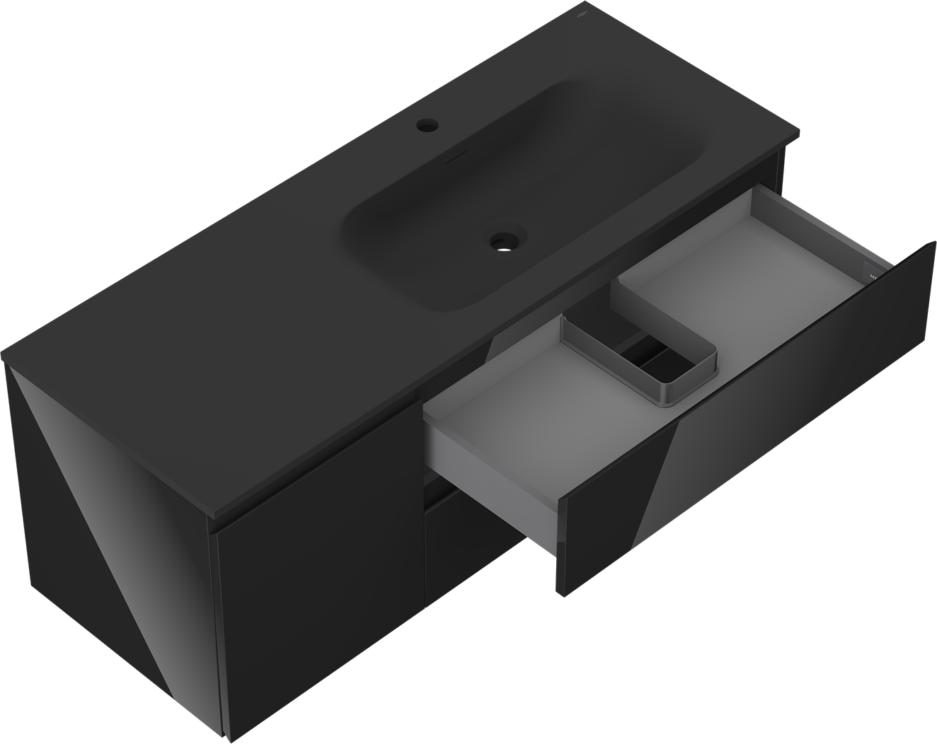 La découpe dans le tiroir est conçue de manière à accueillir le siphon, qui est nécessaire dans les installations de lavabo. Ainsi, le meuble peut être installé de manière pleinement fonctionnelle, sans devoir renoncer à l'espace du tiroir au profit de l'installation.