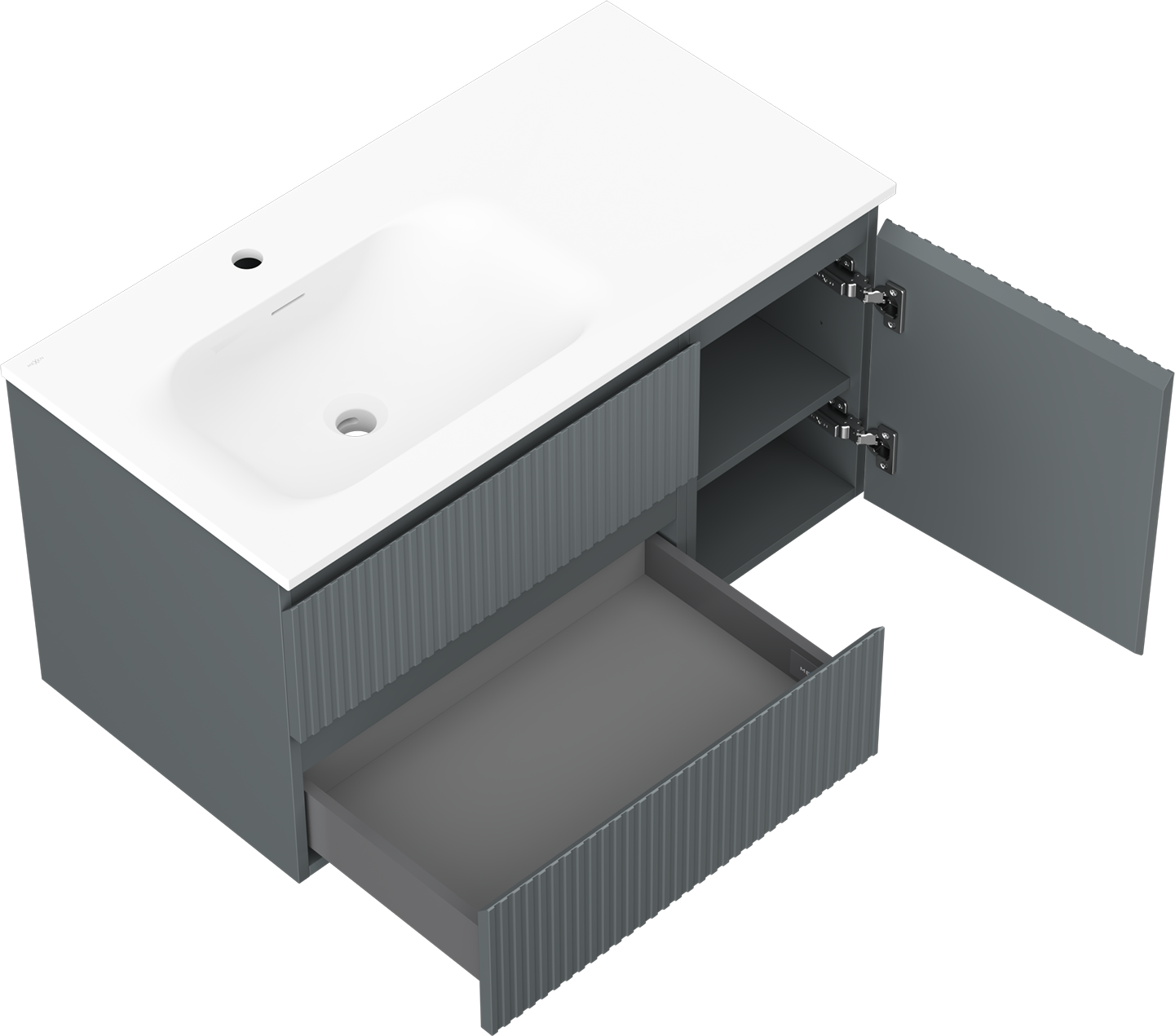 La découpe dans le tiroir est conçue de manière à accueillir le siphon, qui est nécessaire dans les installations de lavabo. Ainsi, le meuble peut être installé de manière pleinement fonctionnelle, sans devoir renoncer à l'espace du tiroir au profit de l'installation.