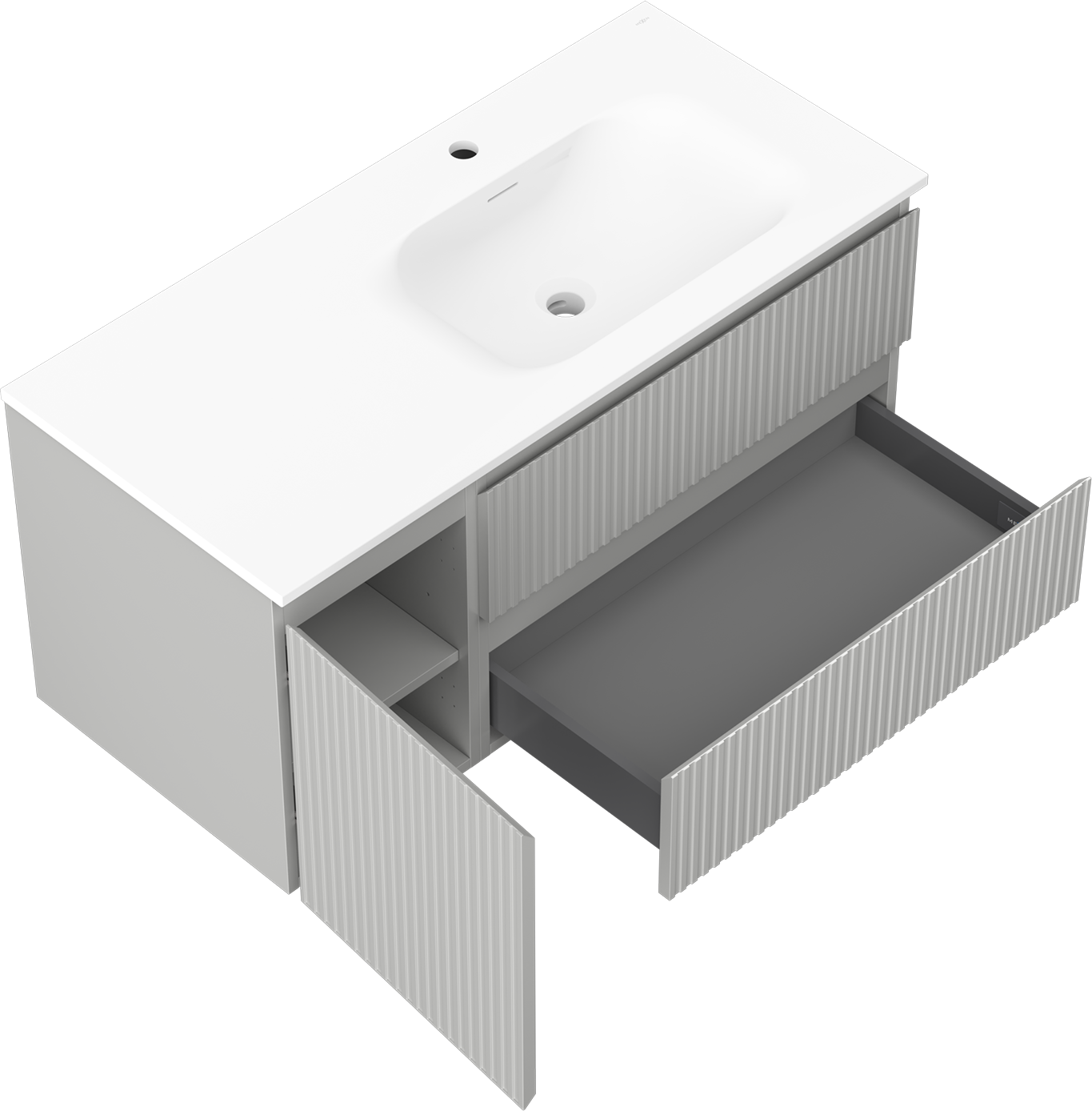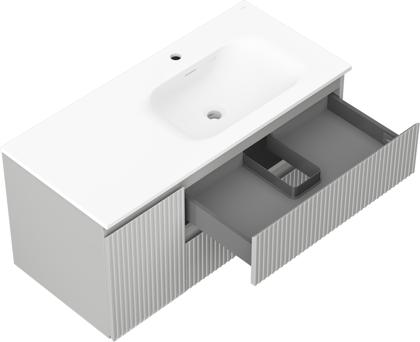 La découpe dans le tiroir est conçue de manière à accueillir le siphon, qui est nécessaire dans les installations de lavabo. Ainsi, le meuble peut être installé de manière pleinement fonctionnelle, sans devoir renoncer à l'espace du tiroir au profit de l'installation.