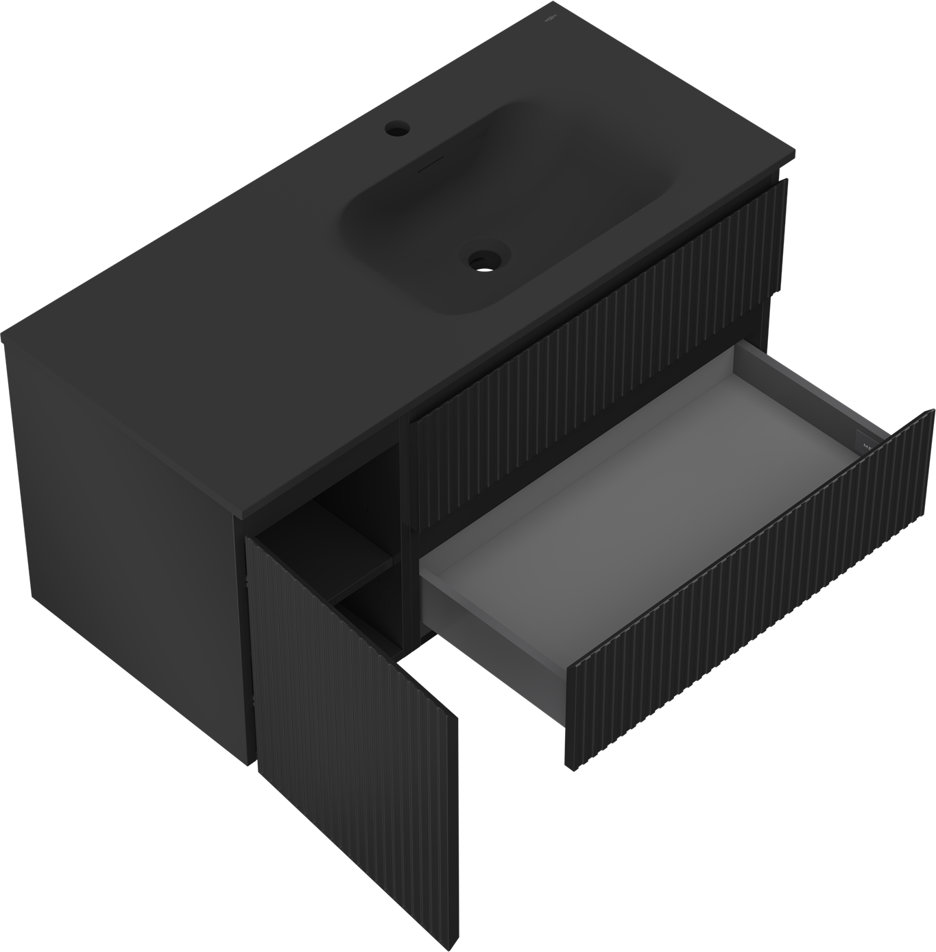 La découpe dans le tiroir est conçue de manière à accueillir le siphon, qui est nécessaire dans les installations de lavabo. Ainsi, le meuble peut être installé de manière pleinement fonctionnelle, sans devoir renoncer à l'espace du tiroir au profit de l'installation.
