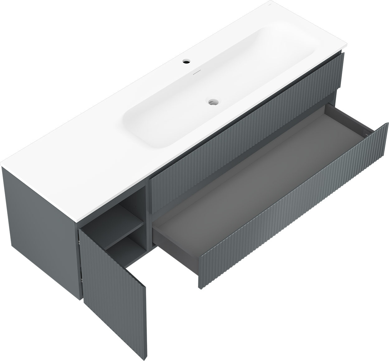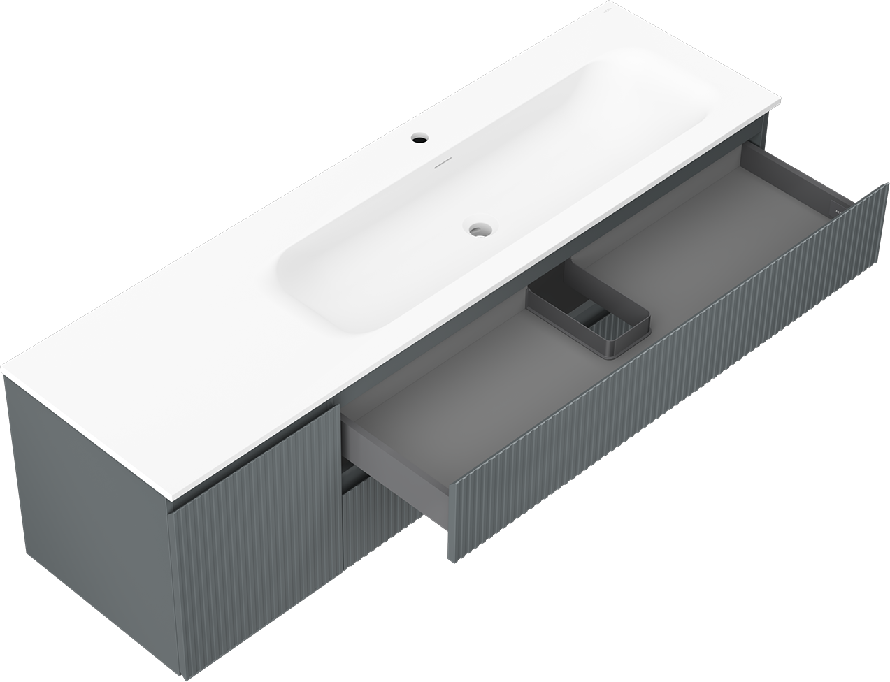 La découpe dans le tiroir est conçue de manière à accueillir le siphon, qui est nécessaire dans les installations de lavabo. Ainsi, le meuble peut être installé de manière pleinement fonctionnelle, sans devoir renoncer à l'espace du tiroir au profit de l'installation.
