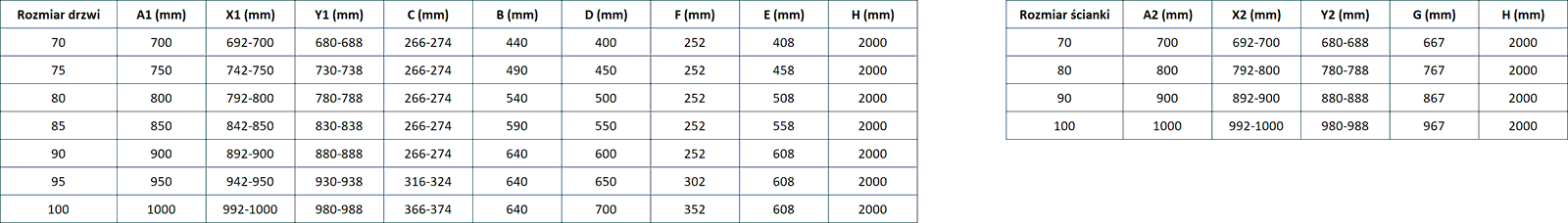 Taille: 70x80 cm (porte droite 70 cm, paroi 80 cm)