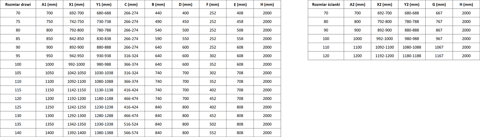 Taille : 90x120 cm (porte gauche 90 cm, paroi 120 cm)