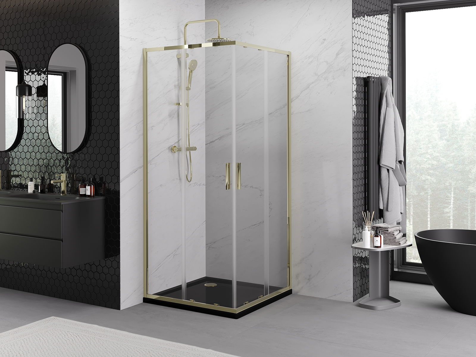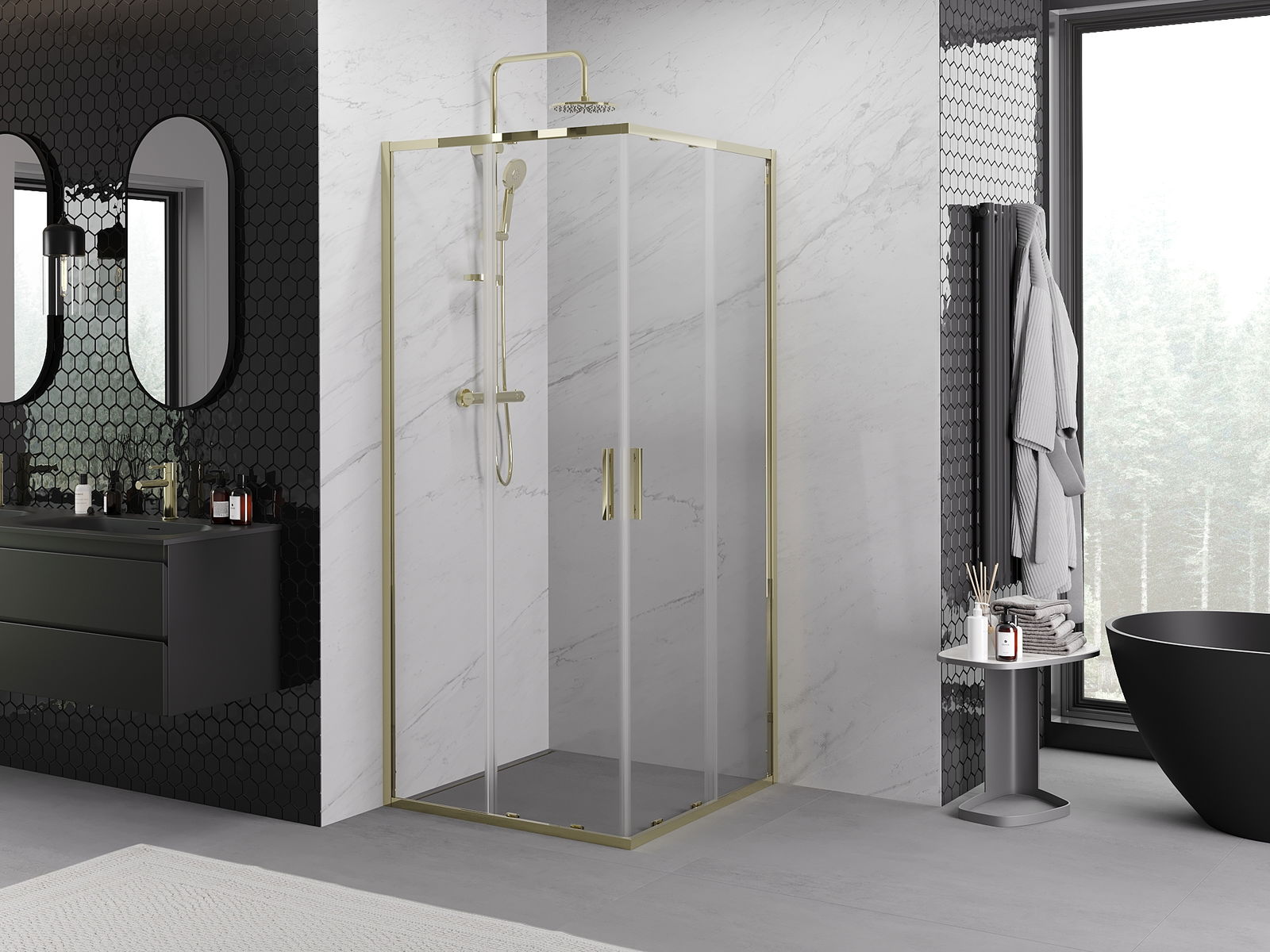 Mexen Exo cabine de douche carrée coulissante 95 x 95 cm, transparente, dorée - 8111-095-095-50-00