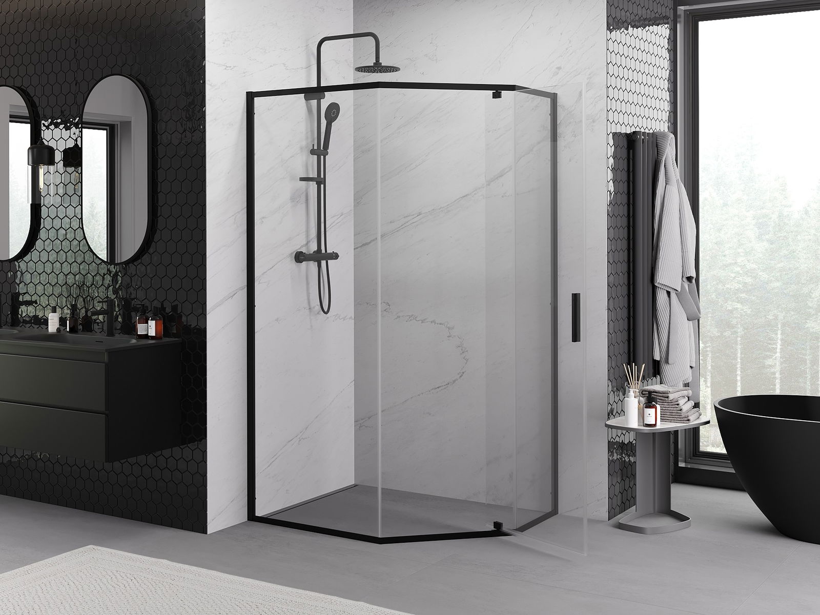 Mexen Exo cabine de douche pentagonale pivotante 90 x 80 cm, transparente, noire - 812-090-080-70-00