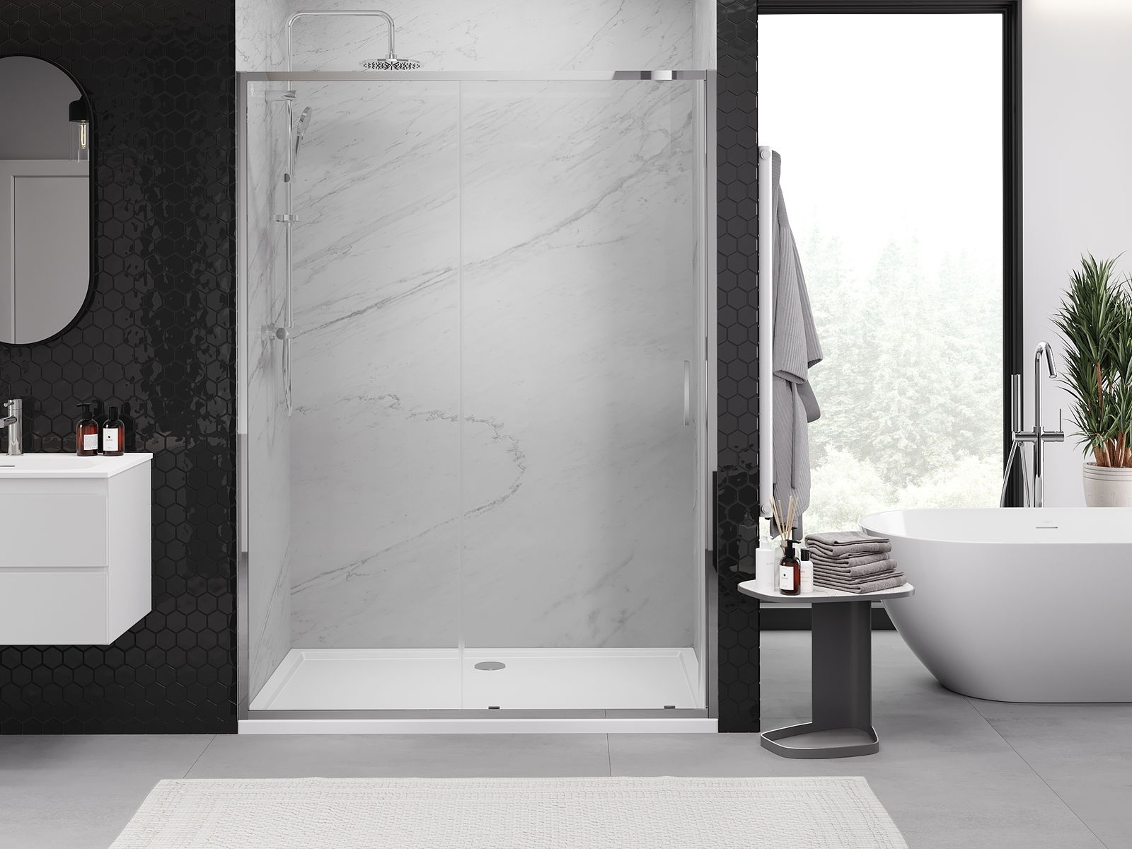 Grâce à l'utilisation d'un système de fixation universel, les portes de douche peuvent être montées à droite ou à gauche, selon les besoins. Cela vous permet de concevoir facilement une douche adaptée à l'espace de votre salle de bain.