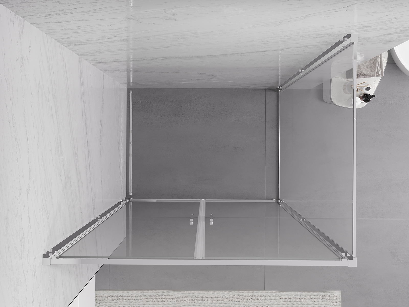 La poignée pratique et confortable est fabriquée en métal durable et résistant. Sa forme à la mode, combinée à une finition assortie à la couleur des profilés, donne à l'ensemble un aspect moderne et stylé, soulignant l'esthétique de chaque salle de bain.