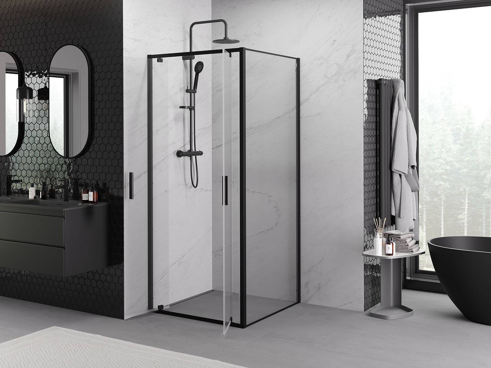 Mexen Exo cabine de douche pivotante 120 x 120 cm, transparente, noire - 8182-120-120-70-00