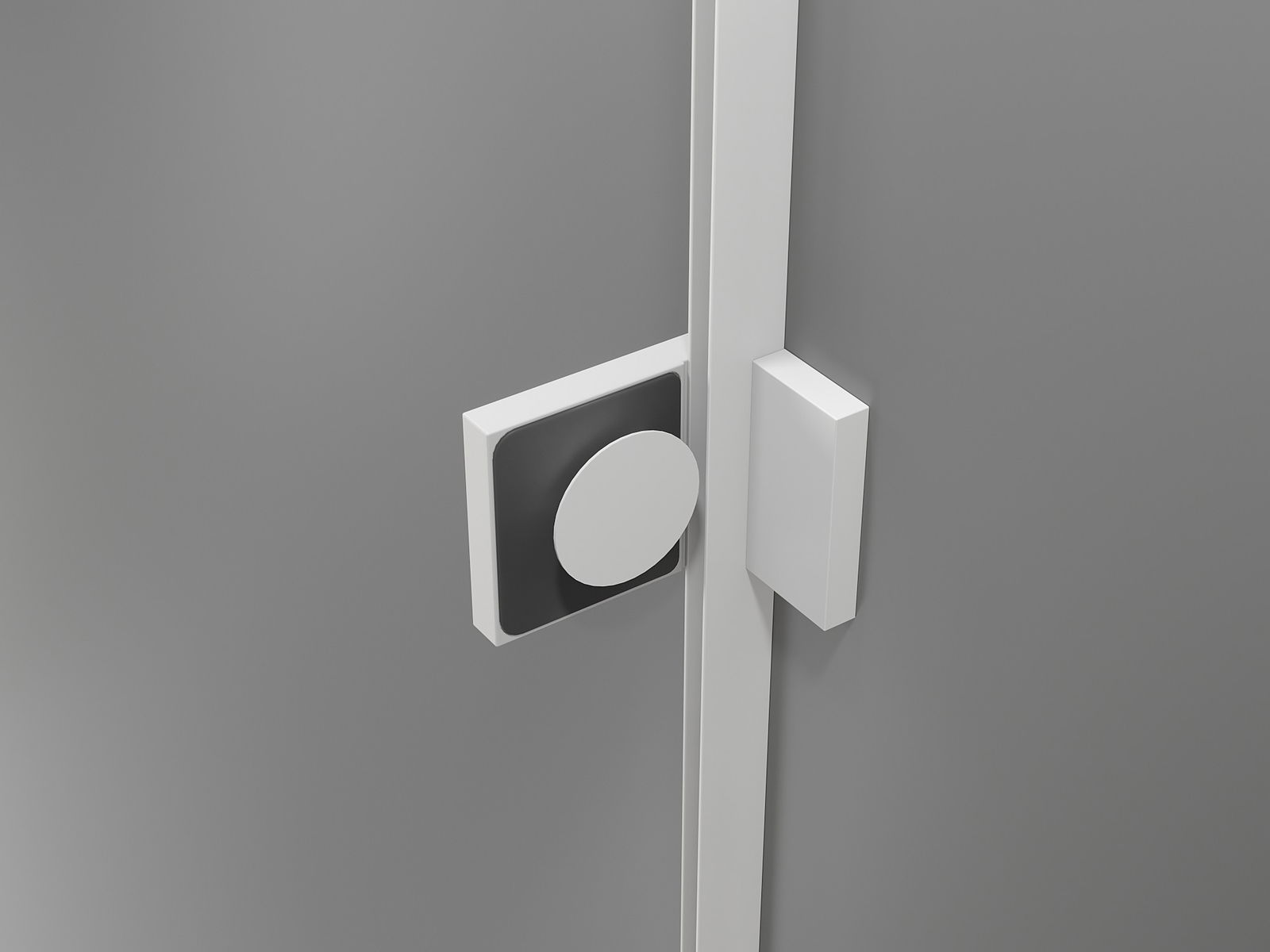 La poignée pratique et confortable est fabriquée en métal durable et résistant. Sa forme à la mode, combinée à une finition assortie à la couleur des profilés, donne à l'ensemble un aspect moderne et stylé, soulignant l'esthétique de chaque salle de bain.