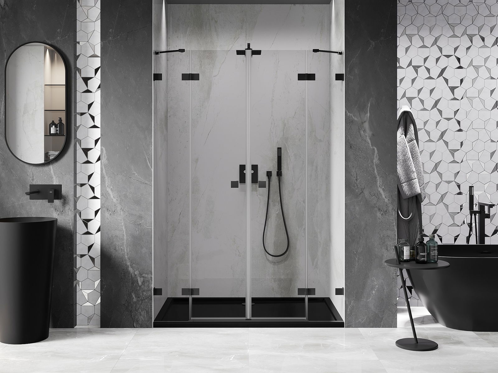 Mexen Lunar Duo porte de douche pivotante 140 cm, transparent, noir - 834D-140-000-70-00