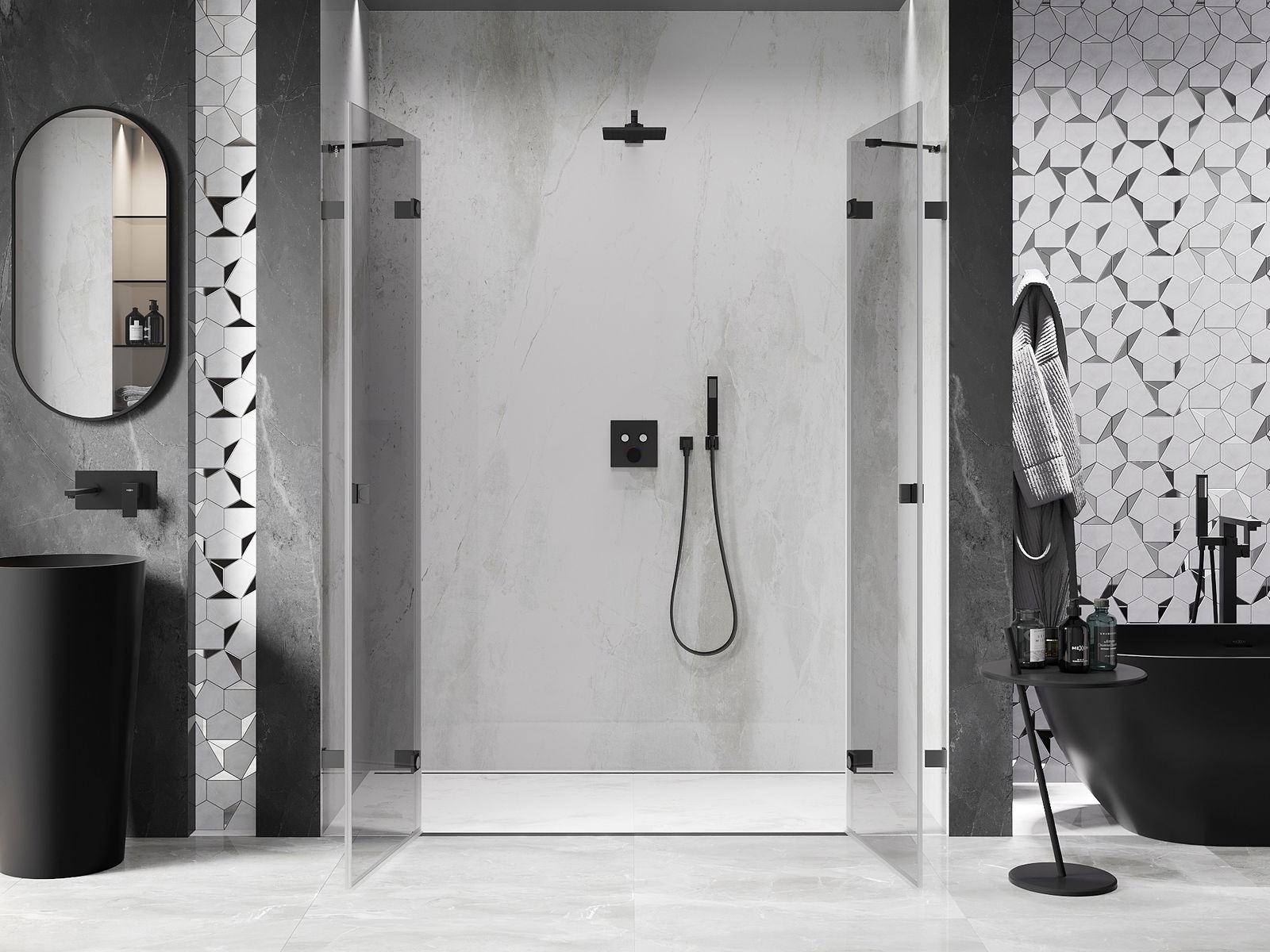 Les pinces et les charnières sont fabriquées en laiton très durable et forment en plus une surface de verre affleurante. C'est un excellent choix qui allie élégance, durabilité et design moderne. Grâce à ces solutions, la douche gagne en esthétique, tout en facilitant le maintien de la propreté.