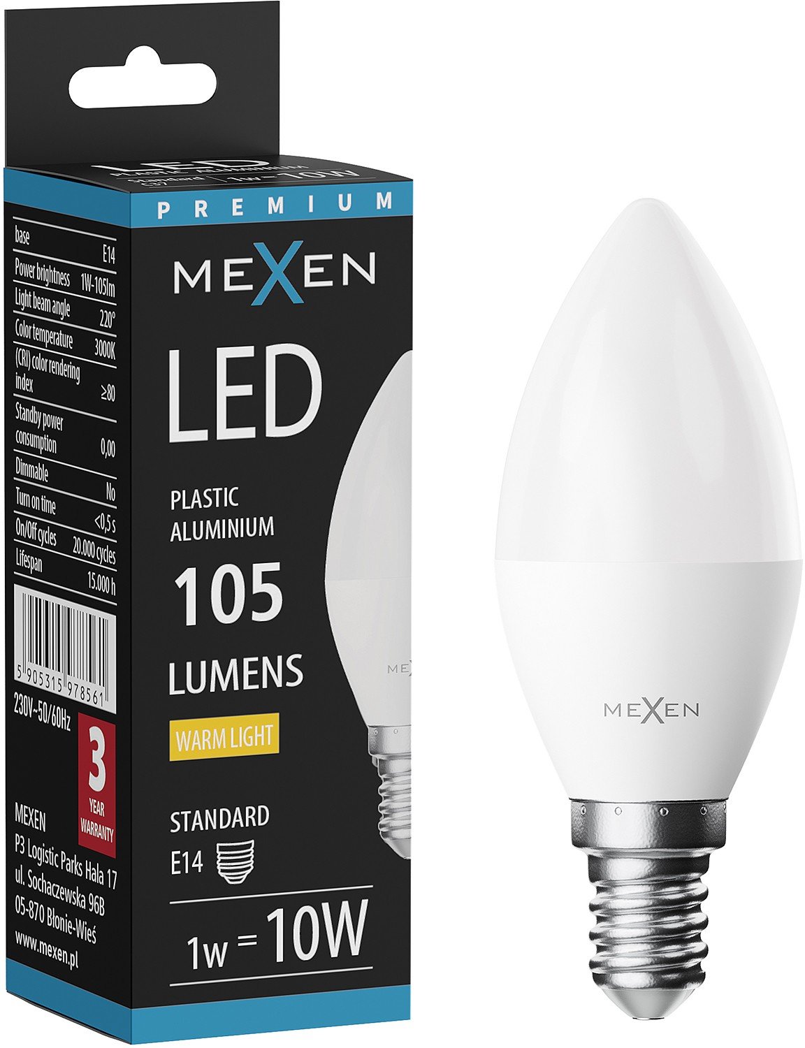 Mexen Nova Ampoule LED E14, C37, 1W, Chaude - 3000K, 105 lm - L102-E14-0130-01
