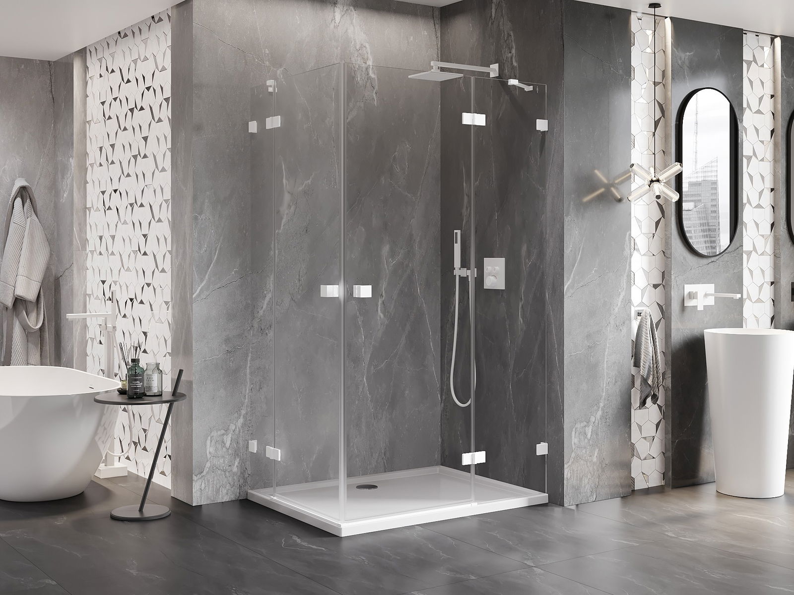 Mexen Lunar Douche cabine duo pivotante droite 115 x 90 cm, transparent, blanc - 834-115P-090L-20-00